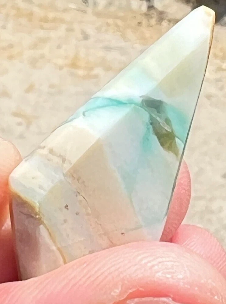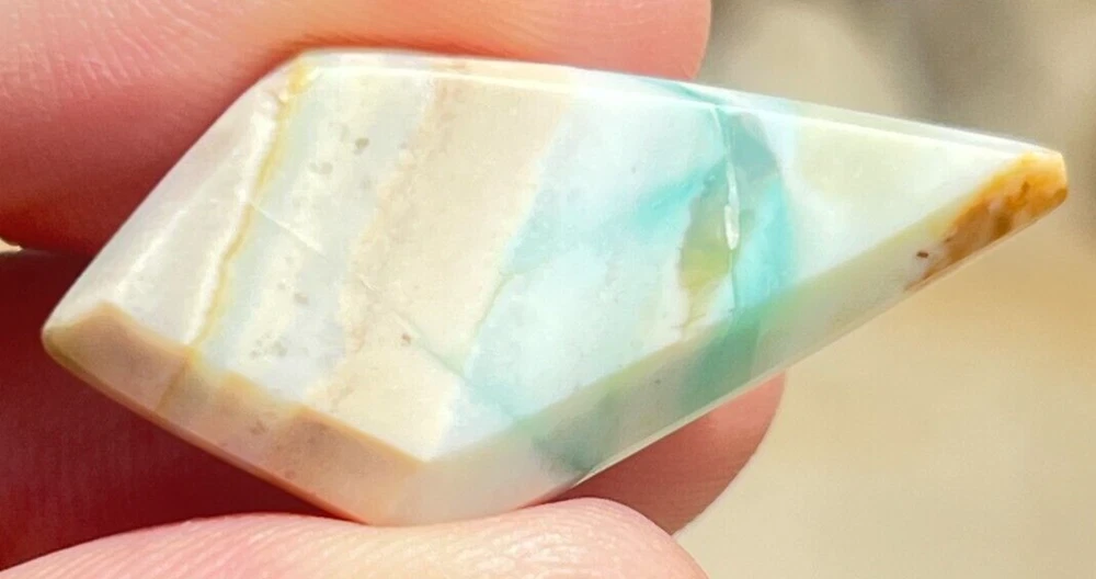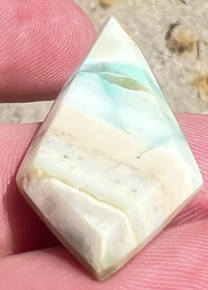 INDONESIAN BLUE OPAL WOOD CABOCHON Gem: Opal Color: Blue / Beige Shape: Diamond Weight: 19.2cts Size: 37x19.4x5.4mm Treatment: None Hardness: 5.5-6.5 Origin: Indonesia Quantity: 1P Thank You!