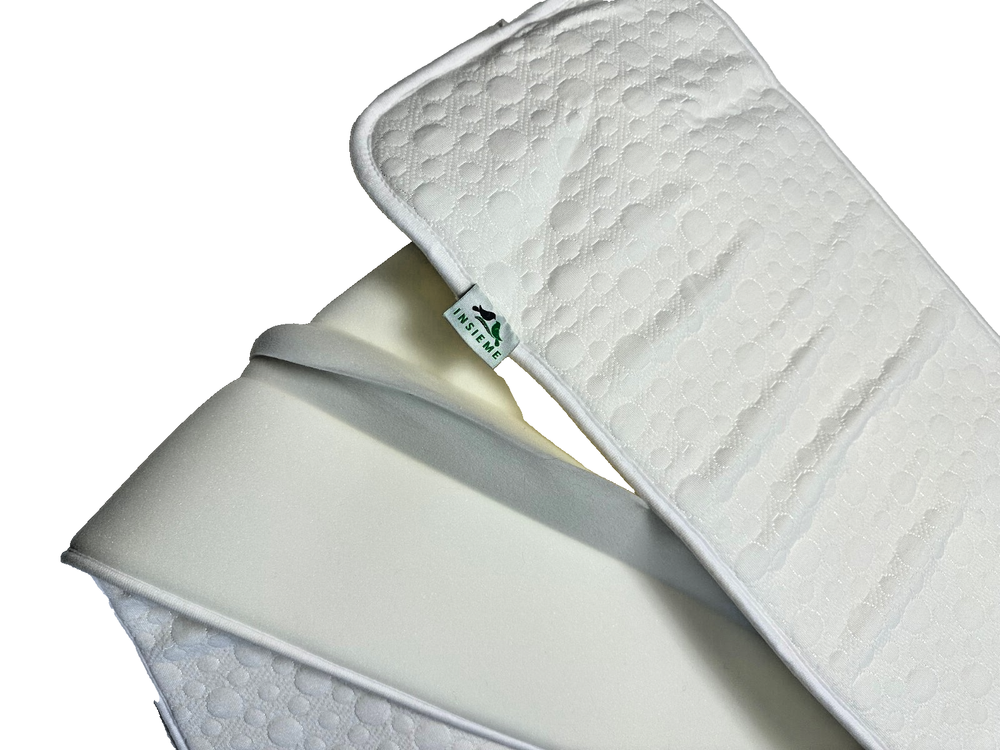 The Insieme 12 inch Bed Bridge Twin to King is a versatile and comfortable solution for turning a twin bed into a king-sized bed. Made from hypoallergenic and quilted bamboo material, this white bed wedge is machine washable and foldable for easy storage. With a length of 74.8 inches, this bed bridge helps fill the gap between the mattresses for a seamless and luxurious sleeping experience.