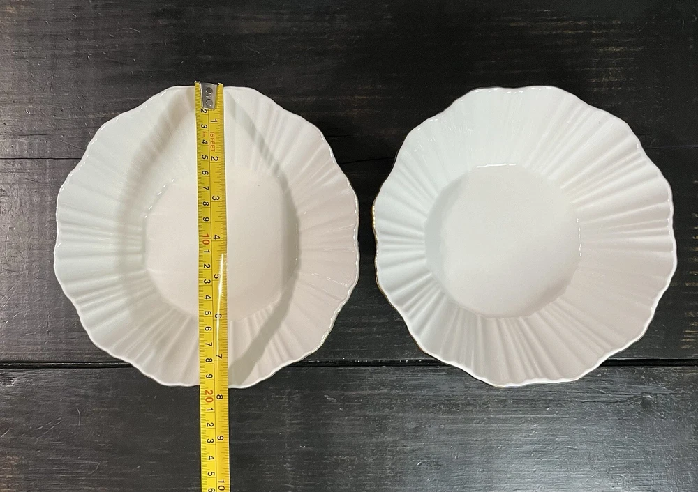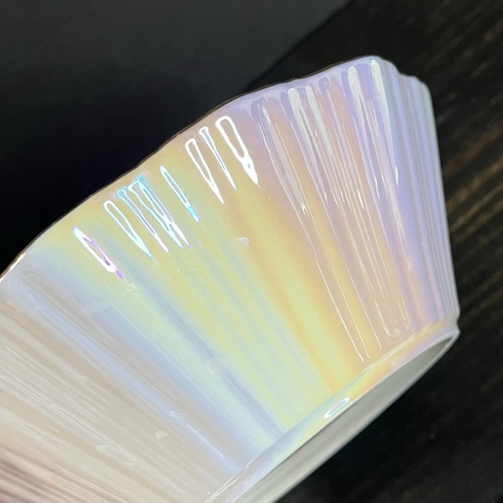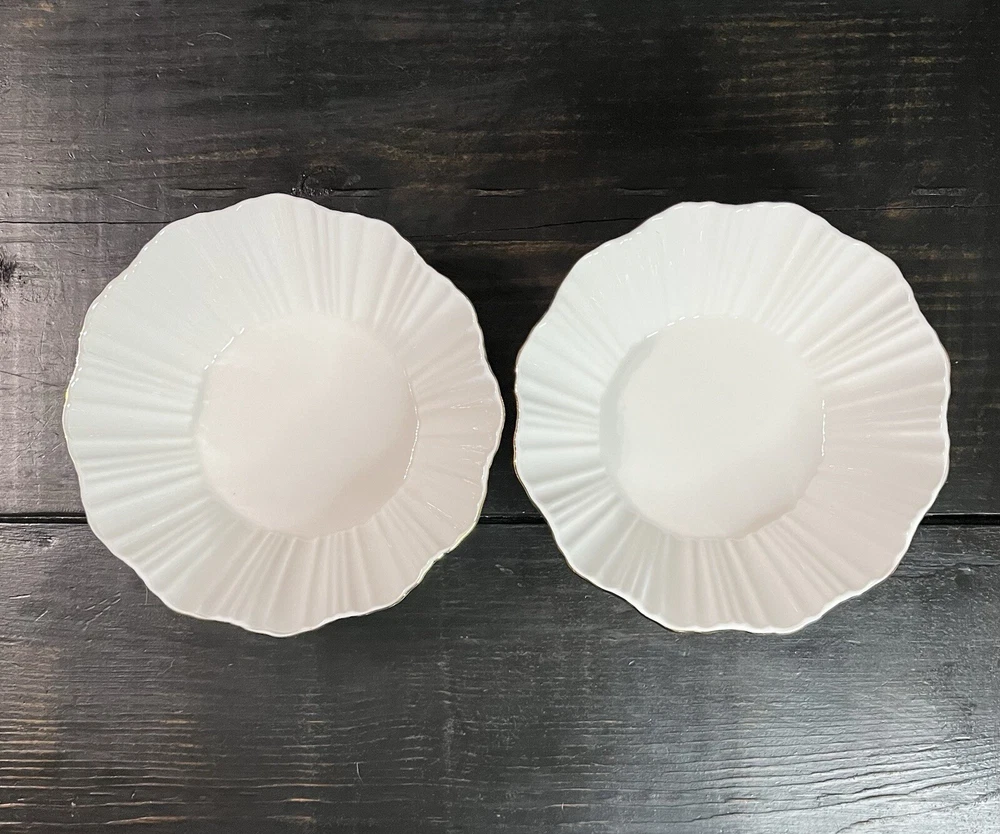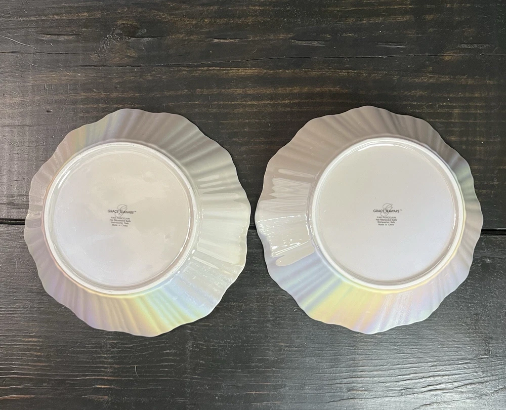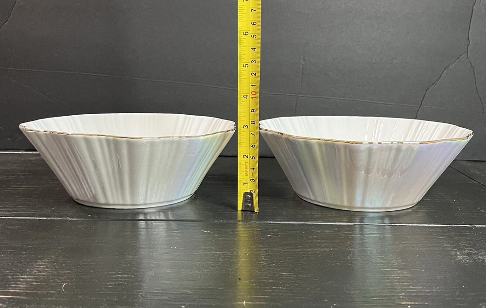 Iridescent Fine Porcelain Scalloped Gold Rim Bowl By Grace Teaware Set Of 2-8” Pre-owned, never used. Excellent condition. Photos are part of the description.