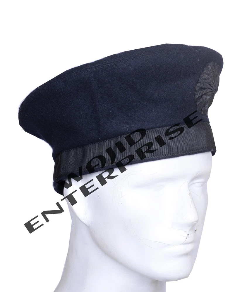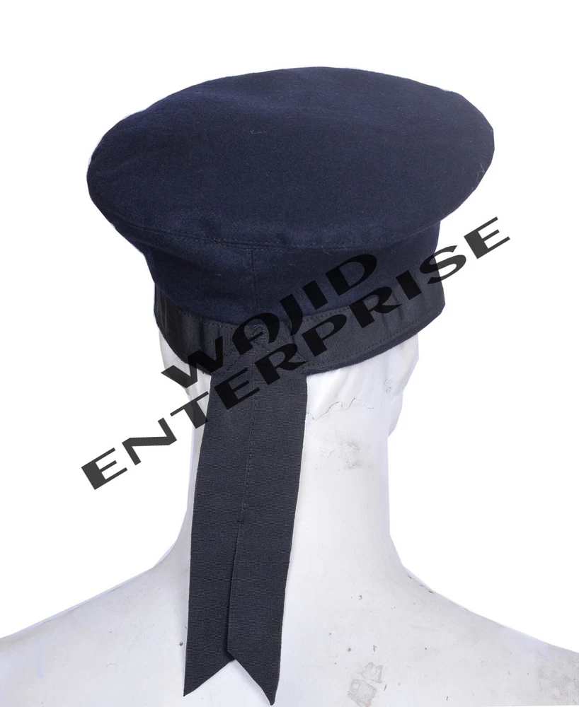 Irish Caubeen Navy Blue Wool Cap . This Handmade Fully Lined Balmoral with 2 straight hanging black polyester strips is an essential accessory to your parade outfit or Please measure your head and consult the chart below. Use a soft, flexible tape measure and measure around your head just above the ears. Measure comfortably, not too tight. Shipping and Handling: Ship 3 or 4 Business Days. Returns and Exchanges: 30 Days Return and Exchange is accepted.