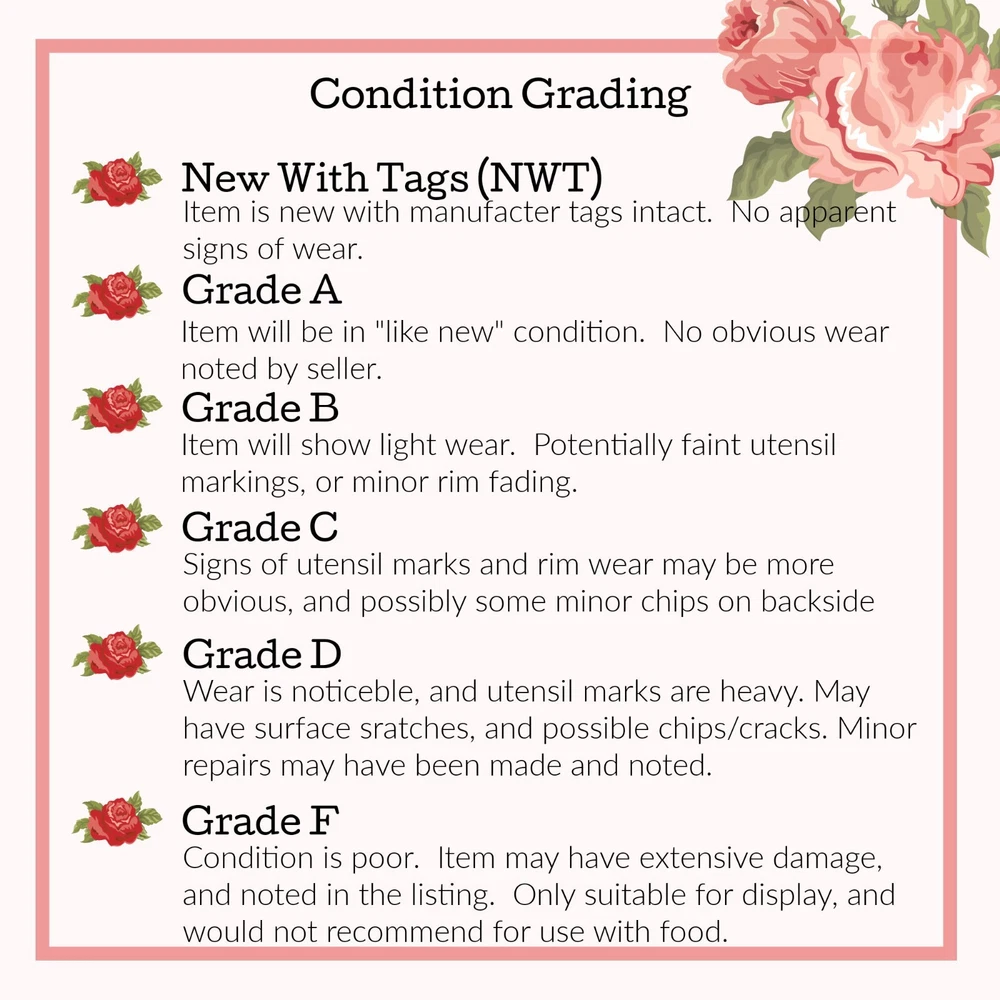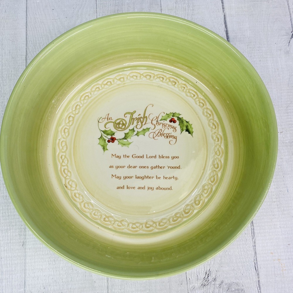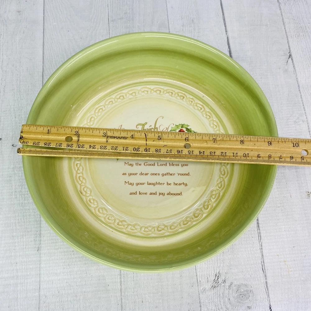 Thank you for shopping at Neat's Treasures! Item Brand: Abbey Press Pattern: An Irish Christmas Blessing Production Period: 2012 Material Type: Stoneware Overall Condition: Grade C(due to some glaze cracking noted) ; please see photos for grading criteria Features Irish Christmas Blessing Bowl Dishwasher Safe Microwave Safe Oven Safe Measurements Diameter (Top): 9.25" Diameter (Bottom): 7.5 Depth: 2.75" I will combine shipping for multiple orders when possible, please contact me prior to making payment for arrangements. Inventory # 612-3 12x12x8 2-3/0 Any props used for item photography and to better showcase the items listed are not included in the item sale. Only items listed in the item description are included for this listing and sale.