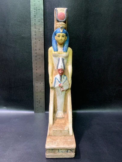 Brand: EgyptologyStoreEG. Item Description: In a beautiful scene, The Goddesses Isis hugs king Osiris in a way that shows much love and protection for him. The Goddesses Isis wearing in her head the symbol of the sun which is in the ancient culture means protection, and this symbol belongs to Hathor. This item is made from lime stone with amazing beautiful colors , fully hand-made by Egyptian sculptors , special made for lovers ;) It's highly recommended for couples who are about to marry or go through a relationship! Ancient sculpture replica from the original one, 100% Egyptian HAND MADE Made from Lime Stone. Height: 12.5 Inches Width: 2.5 Inches Depth: 7 Inches MADE IN EGYPT History: Goddess Isis is one of the greatest Egyptian goddesses. She was the wife and the semi-sister of Osiris. They had a son named Horus. Isis was the goddess of life and magic, so she was able to shield women and children. She also helped sick people by healing them from their sickness. Her symbols were the ankh, her wings, and her throne headdress. accepting many payment methods. Return Policy: You can return our product and get a full refund or exchange the product with another one, however the the conditions must be met. . Feedback is highly appreciated :)