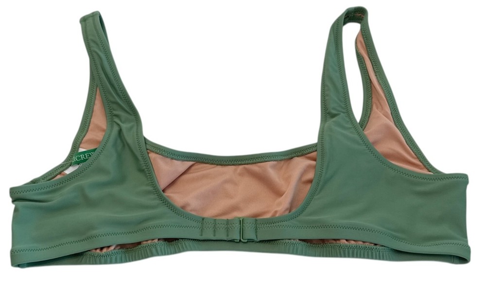 This J. Crew bikini top features a scoop neck design in a vibrant green hue. Perfect for beach days or poolside lounging, it provides a comfortable fit for XL sizes. New with tags, this piece combines style and quality. • Unpadded • Lined • Hook Back Closure - Size - 34C - Color - Green - New with tags. No flaws - Material and Care Tag in Photos. 92% Polyamide 18% Elastan - Smoke and pet free home * I accept reasonable offers. * Same or next day shipping. * New items posted daily. * All used items are cleaned, washed, and/or thoroughly steamed before listing. * Bundle discounts in closet Size: Womens 34C Condition: New With Tags