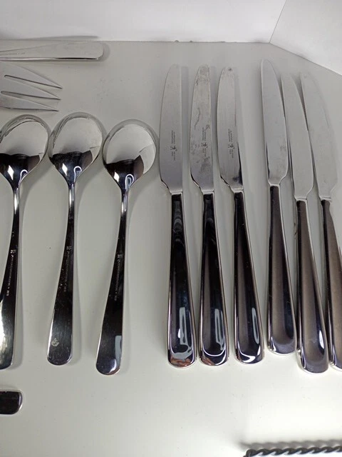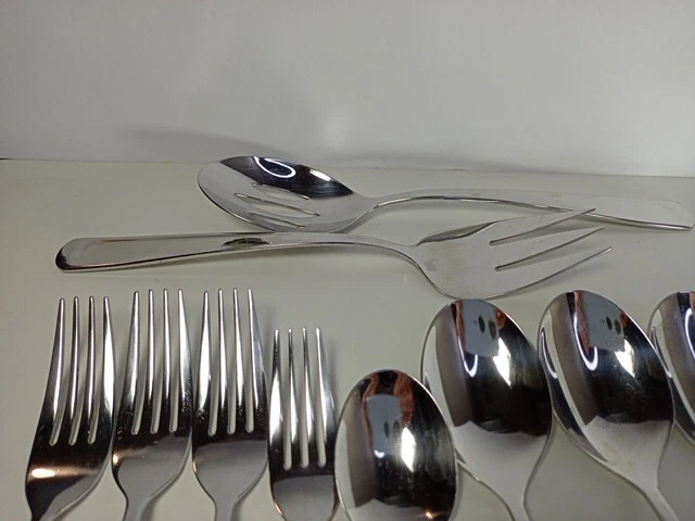 Please check the pattern carefully. This set may or may not be Silvano. It is the best match found. Marked as INOX 6 Knives 4 Large Spoons 1 Small Spoon 1 Small Fork 3 Large Forks 1 Serving Spoon 1 Serving Fork 1 Spreader