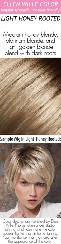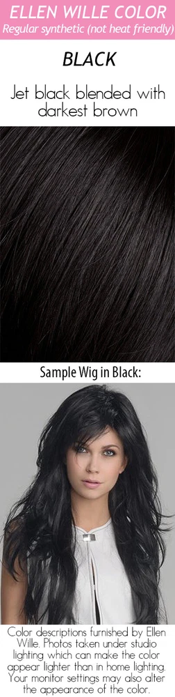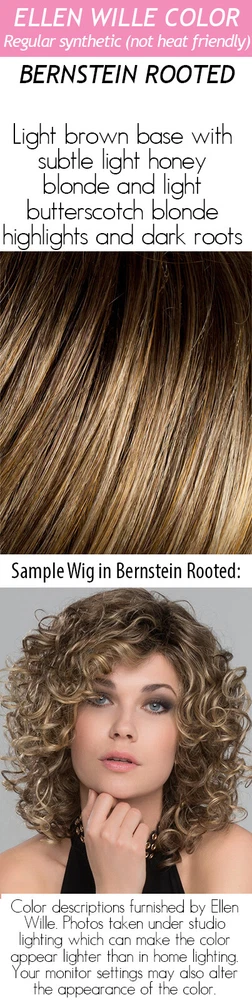 Jamila Plus by Ellen Wille is lavish with volume, body and beautiful curls! This mid-length wig features Ellen Wille's impeccable temple to temple lace front that offers styling versatility and a seamless, natural hairline. Style away from the face or however you choose. The cap design is extremely comfortable with open wefting and is ideal for a petite to average head size. The adjustable velcro straps in the nape attach to very soft felt and allow for altering or reducing the circumference size up to 1.25". The density of the ready-to-wear synthetic hair mimics biological hair and requires little to no customization or thinning. Jamila Plus is part of the Ellen Wille Hair Power Collection. Features: From Ellen Wille's Power collection. Lace Front: Mimics a natural hairline,ready to wear and virtually invisible. Lace front contours to the shape of your head, creating a natural looking hairline and off-the-face styling versatility. Basic Cap - Open wefting that allows for air ventilation and is known for durability Velvet Ear Tabs: Allows smooth customization with bendable wire. Adjustable Tabs: Allows the wearer to adjust the circumference up to 1/2 an inch. Synthetic hair. Colors Shown in Photos: Model in sleeveless black top: Bernstein Rooted | Blonde model: Light Honey Rooted Hair Lengths: Front: 4 - 7" | Crown: 3 - 8" | Sides: 6 - 10" | Nape: 3.5 - 9" Cap Size: Petite/Average Buy with Confidence! Pinkee Promise is an authorized Ellen Wille retailer. Our licensed fitters and stylists are ready to help you find the right piece for you, so contact us if you need assistance choosing a style or color that will be right for you! Most of our wigs and hairpieces ship directly from the manufacturer or distributor, so you never have to worry about their authenticity. We use Ellen Wille 's professionally photographed images that are the very best available to ensure color accuracy, however we can't control the way the colors will look on your monitor. If you are unsure of a color or have any questions, please contact us so that we can help you place your order.