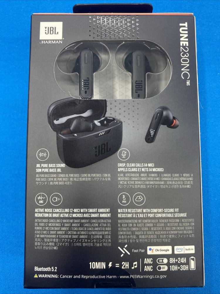 Experience high-quality audio with the JBL Tune 230NC TWS Bluetooth In-Ear Headphones in Black. These headphones are perfect for studio monitoring and live monitoring, with a frequency range of 20 Hz – 20 kHz and an impedance of 16 ohm. The double earpieces provide a comfortable fit, and the headphones are sweat-proof and waterproof, making them perfect for any activity. With Bluetooth and USB-C connectivity, these headphones are wireless and have a rechargeable battery. They also feature active noise cancellation, touch control, and a built-in microphone with noise isolation. The JBL Tune 230NC TWS headphones are perfect for anyone who wants to enjoy high-quality audio on-the-go.