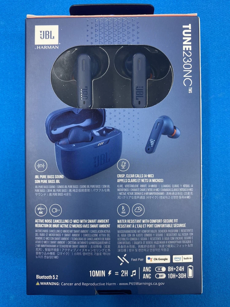 Experience high-quality audio with the JBL Tune 230NC TWS Bluetooth In-Ear Headphones in blue These headphones are perfect for studio monitoring and live monitoring, with a frequency range of 20 Hz – 20 kHz and an impedance of 16 ohm. The double earpieces provide a comfortable fit, and the headphones are sweat-proof and waterproof, making them perfect for any activity. With Bluetooth and USB-C connectivity, these headphones are wireless and have a rechargeable battery. They also feature active noise cancellation, touch control, and a built-in microphone with noise isolation. The JBL Tune 230NC TWS headphones are perfect for anyone who wants to enjoy high-quality audio on-the-go.