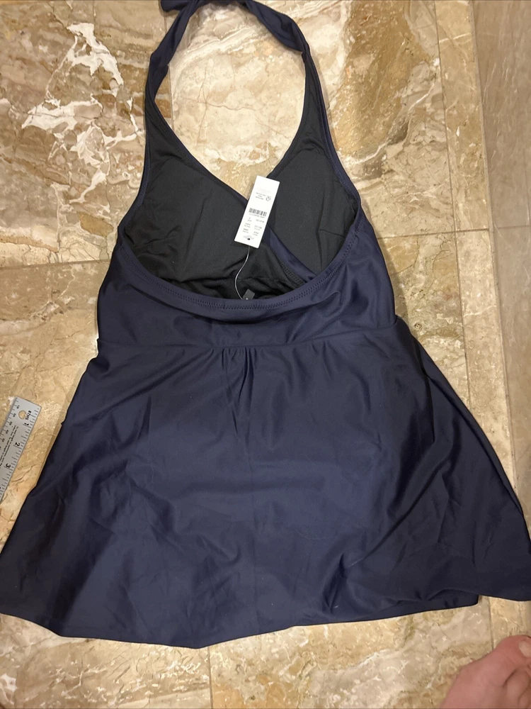 J.Crew $128 Halter Wrap Swim Dress Navy Size 2 BC122