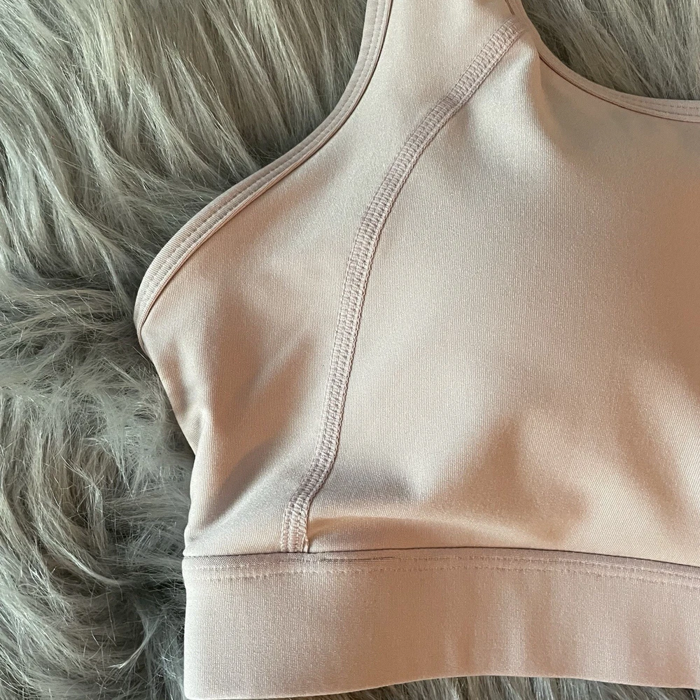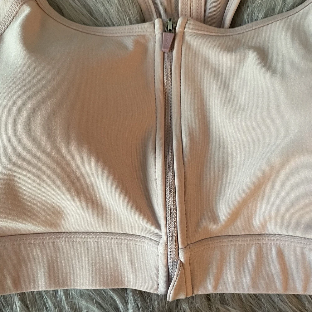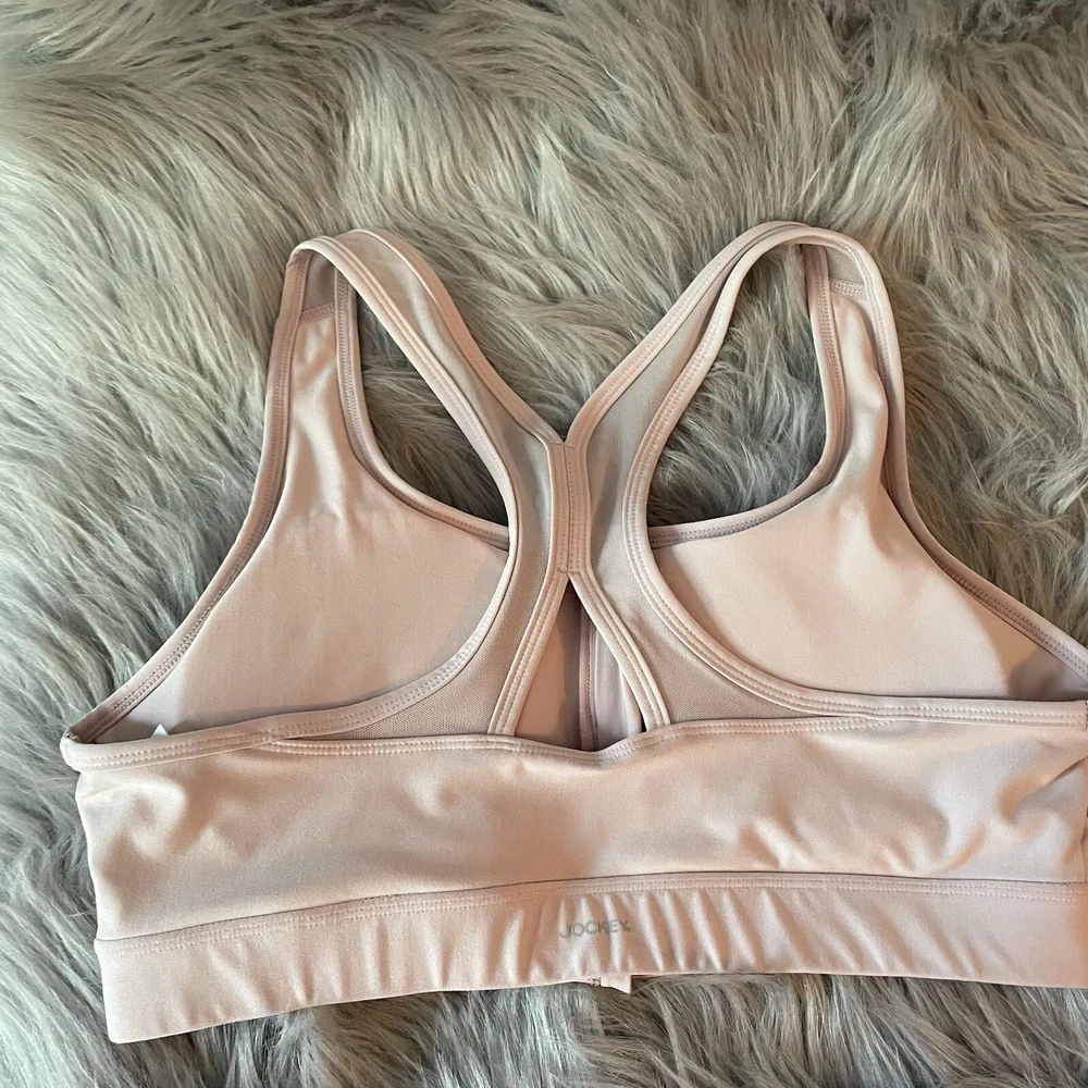 JOCKEY Sz XL Pale Pink Zip Front Sports Bra Padded cups Zipper front Racerback straps with mesh inset In good, clean preowned condition