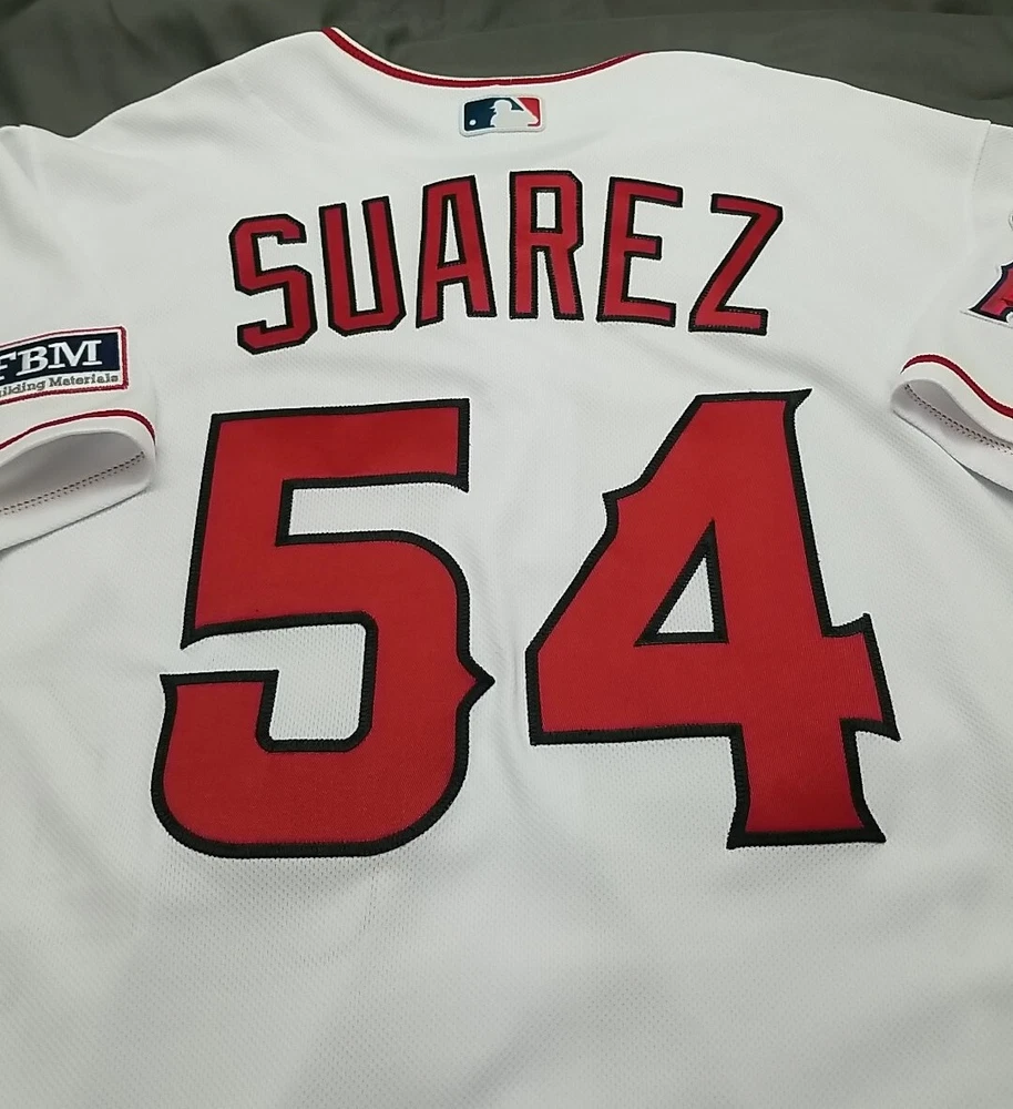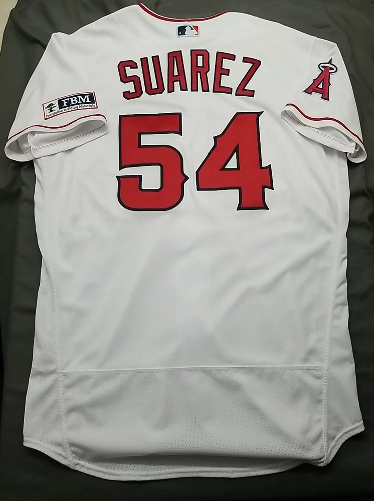 JOSE SUAREZ #54 MLB Team Issued 10/11/2023 ANGELS Nike WHITE HOME JERSEY Size 46 Set 2 GU with hologram coa vintage fbm patch Item will be shipped with sturdy box securely