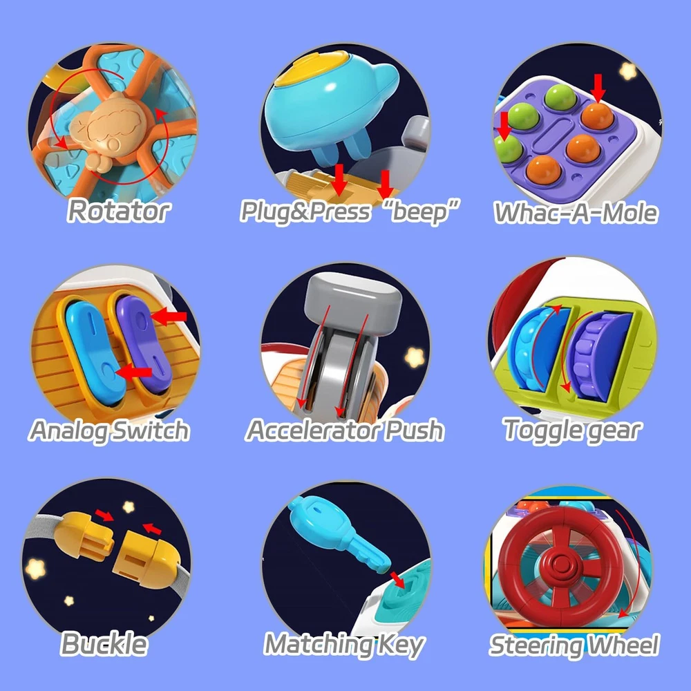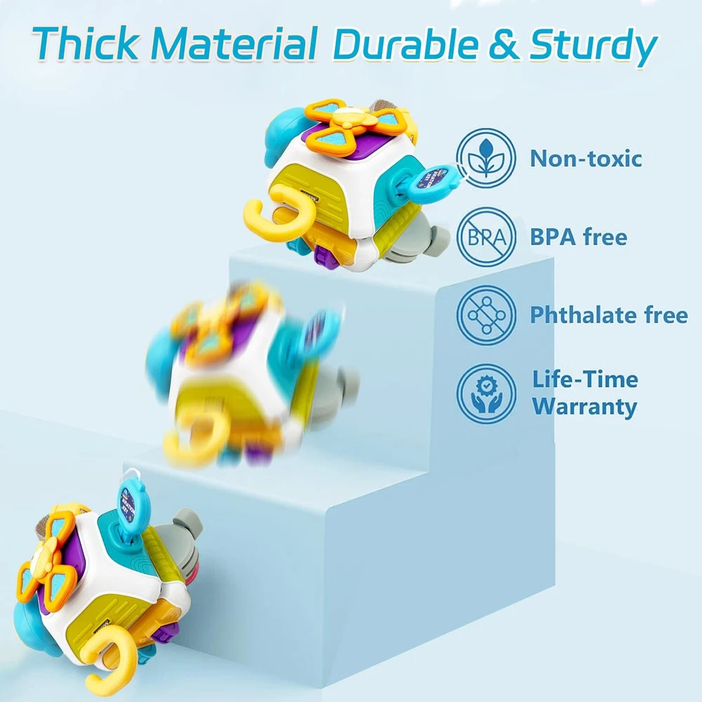JRUXJWI Montessori Toys for Baby 18-24 Months Busy Cube Sensory Toddler Toys Age 2 3 4 Airplane Plane Car Travel Toy for Early Learning Birthday Gift… baby sensory toy 【Montessori Busy Cube Toys】This Montessori toys includes 10 funny activity panels includes rotating steering wheel, spinning spinner, analog plug, fun switches, flight simulation accelerator, simulated gear rotation, portable wristband clasp, key pairing and happy gopher. These are perfect Montessori toys for toddlers, keep children busy and entertained for hours fostering their creativity and imagination. 【Motor Skills Learning toy】The Montessori baby toy is educational and fun to play with and encourages motor skills through some simple pushing, pulling, grasping, spinning and pressing actions. It can improve Hands-on ability. Assists babies to practice hand-eye coordination using real world challenges. 【Sensory Fidgets Toys for Kids】Bright and vibrant colour combinations, different shapes, touch and sound provide sensory stimulation, it is conducive to stimulating the baby's sensory development and imagination, improve color recognition and encourage the development of fine motor skills and hand-eye coordination. Perfect sensory toy for toddlers. 【Durable and Safe】 The Montessori Busy Board Cube toys are well made with ABS. It is designed with toddlers safety in mind, featuring rounded edges, non-toxic paints, and secure parts,very friendly, super sturdy and Durable. 【Perfect Gift for Toddlers & Babies】This travel toys for toddlers is very easy to carry, even on short trips, it can keep your baby focused on the game that will be best Birthday gifts, Christmas gifts, Thanksgiving gifts, Easter gifts, travel toys, teaching aids etc. Shipping from the USA All of our products are shipped from the USA, ensuring quick delivery to your destination. Payment We offer the following payment methods: PayPal, credit card, bank transfer, and eBay's secure payment system. Free Shipping & Free Returns Shipping within the USA is FREE. Additionally, any return is absolutely free for you. Risk-Free Purchase You have the option to return an item within 30 days without any justification. We cover the return shipping costs! Fast Shipping We ship immediately upon receipt of payment. Generally, the package is delivered within 2-3 days in the USA. If it takes longer, we will contact you. Quality and Costs Made in Europe, USA, China No customs fees or additional charges Total satisfaction guarantee Invoice with declared VAT available upon request in .pdf format Feedback Your feedback is very important to us. After you pay for your purchase, you will automatically receive positive feedback from us.
