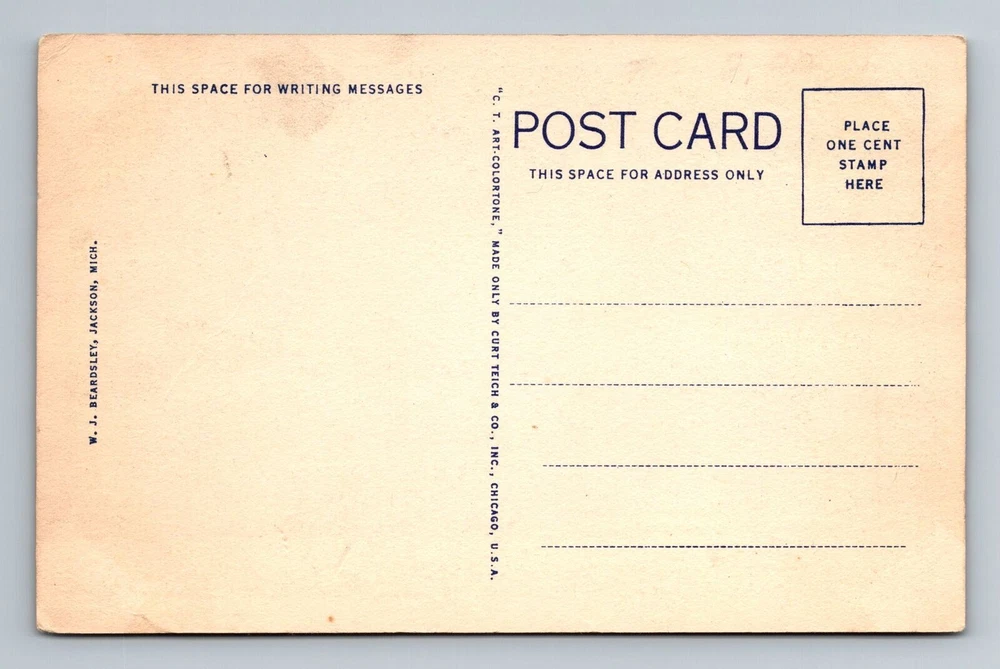 Original/Licensed Reprint: Original Unit of Sale: Single Unit Country/Region of Manufacture: Unknown Country: USA Theme: Cities & Towns Region: Michigan Postage Condition: See Image Era: Linen Subject: Cities & Towns City: Jackson Type: Printed (Lithograph)