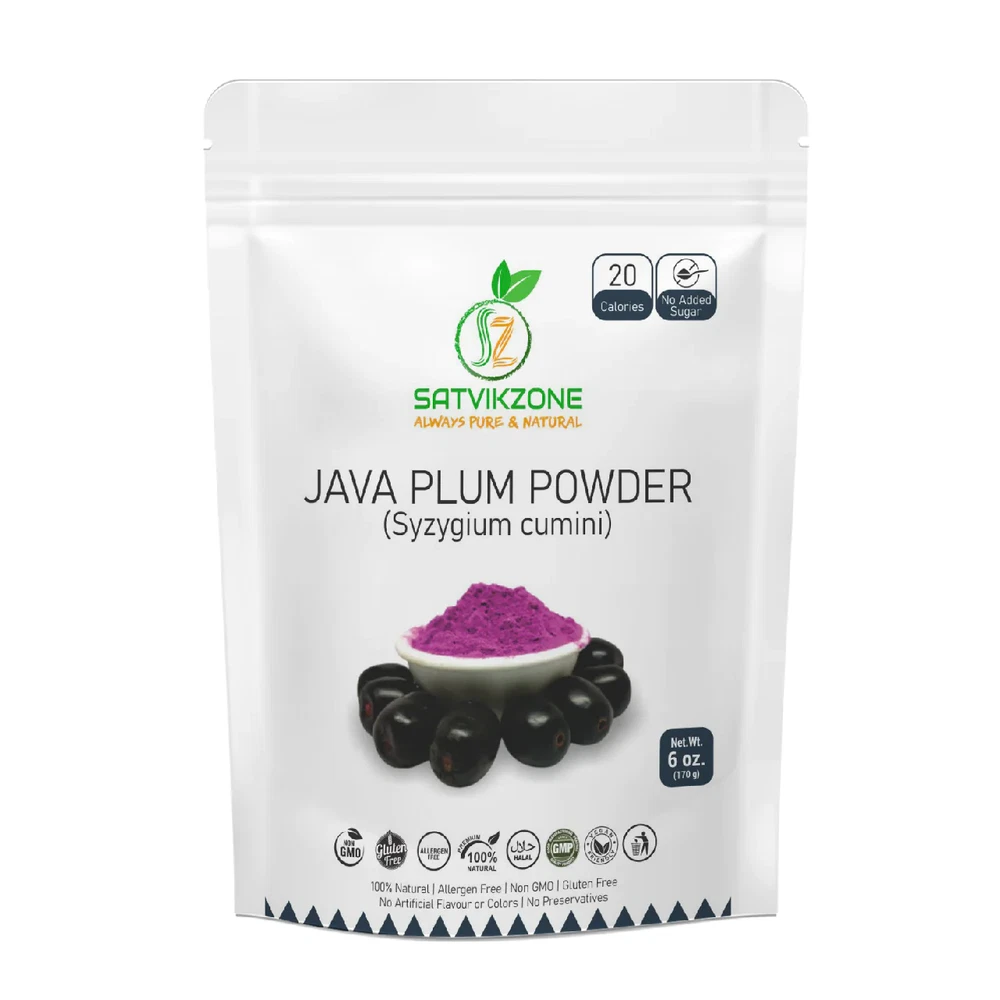 Enjoy the wonderful sweet & sour taste of fresh Java Plum any time of the year, in the form of shelf stable powder. JAVA PLUM commonly known as Syzygium cumini, Malabar Plum, Black Plum, Jamun or Jambolan, is a native juicy berry of South Asian countries. 100% Natural Vegan Gluten-free Non-GMO Halal Allergen Free No Artificial flavor, color or preservatives added No added Sugar Ingredients: 100% Natural Java Plum Powder Suggested Use: Smoothies, Yogurt, Jams, Jellies, Juice, Ice cream & Popsicles Net Wt.: 6 oz. It comes in resealable stand-up pouch. After use you can simply close the pouch to prevent clumping and store it in your fridge or cabinet. Protect from direct sun light and do not handle with wet spoon. Java Plum Jamun Fruit Powder, 100% Natural, 6 oz, No Added Sugar-SATVIKZONE Enjoy the wonderful sweet & sour taste of fresh Java Plum any time of the year, in the form of shelf stable powder. JAVA PLUM commonly known as Syzygium cumini, Malabar Plum, Black Plum, Jamun or Jambolan, is a native juicy berry of South Asian countries.100% NaturalVeganGluten-freeNon-GMOHalalAllergen FreeNo Artificial flavor, color or preservatives addedNo added SugarIngredients: 100% Natural Java Plum PowderSuggested Use: Smoothies, Yogurt, Jams, Jellies, Juice, Ice cream & PopsiclesNet Wt.: 6 oz.It comes in resealable stand-up pouch. After use you can simply close the pouch to prevent clumping and store it in your fridge or cabinet. Protect from direct sun light and do not handle with wet spoon. Java Plum Jamun Fruit Powder, 100% Natural, 6 oz, No Added Sugar-SATVIKZONE Enjoy the wonderful sweet & sour taste of fresh Java Plum any time of the year, in the form of shelf stable powder. JAVA PLUM commonly known as Syzygium cumini, Malabar Plum, Black Plum, Jamun or Jambolan, is a native juicy berry of South Asian countries. 100% Natural Vegan Gluten-free Non-GMO Halal Allergen Free No Artificial flavor, color or preservatives added No added Sugar Ingredients: 100% Natural Java Plum Powder Suggested Use: Smoothies, Yogurt, Jams, Jellies, Juice, Ice cream & Popsicles Net Wt.: 6 oz. It comes in resealable stand-up pouch. After use you can simply close the pouch to prevent clumping and store it in your fridge or cabinet. Protect from direct sun light and do not handle with wet spoon. × × × × × × × × × Buy now and save! Shipping info Click the Shipping & Payments tab above the listing description for more info Click the Shipping & Payments tab above the listing description for more info! Additional delivery notes PICK UP OPTION Sorry, our items are NOT available for pick-up. PAYMENT Immediate payment is required upon selecting "Buy It Now" or upon checking out through the cart. We accept payment via U.S. PayPal accounts and all Major Credit Cards, Debit Cards & Google Pay. We are legally required to collect sales tax in those states and localities where we maintain a physical presence (nexus). The applicable amount of sales tax charged to an order will be calculated based on the shipment destination's state and local sales tax laws. Thank you for shopping with us on eBay! Additional Information No additional information at this time Ask seller a question You might also like Pineapple Fruit Powder, 100% Natural, 6 oz, No Added Sugar-SATVIKZONE Activated Charcoal with Tea Tree Oil, 4.2oz, Handmade Soap Bar–SATVIKZONE Mango Fruit Powder, 100% Natural, 6 oz, No Added Sugar-SATVIKZONE Sugarcane Premix Fruit Powder, 100% Natural, 6 oz, No Added Sugar-SATVIKZONE Contact To contact our Customer Service Team, simply click the button here and our Customer Service team will be happy to assist. Ask seller a question © Satvikzone Shipping & Payments Click the Shipping & Payments tab above the listing description for more info Payment Accepted Payment Methods Immediate payment is required upon selecting "Buy It Now" or upon checking out through the cart. We accept payment via U.S. PayPal accounts and all Major Credit Cards, Debit Cards & Google Pay. We are legally required to collect sales tax in those states and localities where we maintain a physical presence (nexus). The applicable amount of sales tax charged to an order will be calculated based on the shipment destination's state and local sales tax laws. Thank you for shopping with us on eBay! Returns Returns are accepted Items must be returned within 30 days of the auction ending Buyer will pay for return shipping. eBay integration by