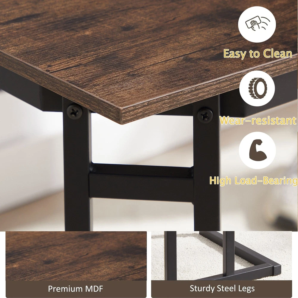 Our 4-piece dining table set is designed with a large rectangular table, a bench, and 2 stools, providing more space and comfort while enjoying a delightful drink time with your family or entertaining friends with refreshments at home. The frame is made of heavy-duty steel with powder-coated surfaces, ensuring excellent rust resistance and sturdiness. And the thickened board is made of premium MDF board that is scratch-resistant and waterproof for easy cleaning. Besides, the large tabletop and 3 comfy chairs would bring you a more comfortable dining and sitting experience. When not in use, the bench and 2 stools can be tucked under the table, which would not take much space. And you can adjust the bottom footpads to make the table set fitting uneven floors,ensuring more stability.Features: Free Shipping Over $49.99* Details Javlergo 4-Piece Dining Table Set, Space Saving Kitchen Table with Bench and Two Product Description: Our 4-piece dining table set is designed with a large rectangular table, a bench, and 2 stools, providing more space and comfort while enjoying a delightful drink time with your family or entertaining friends with refreshments at home. The frame is made of heavy-duty steel with powder-coated surfaces, ensuring excellent rust resistance and sturdiness. And the thickened board is made of premium MDF board that is scratch-resistant and waterproof for easy cleaning. Besides, the large tabletop and 3 comfy chairs would bring you a more comfortable dining and sitting experience. When not in use, the bench and 2 stools can be tucked under the table, which would not take much space. And you can adjust the bottom footpads to make the table set fitting uneven floors,ensuring more stability. Features: Dining Table Set for the Whole Family: The 4-piece dining table set includes a wooden table, a bench, and 2 stools, which are perfect for family gatherings or entertaining friends. And the spacious tabletop measures 43.3" x 23.6" (L x W), providing a comfy and relaxing dining environment. Sturdy & Stable Structure The dining table set is made of high quality MDF and powder coated metal frame, which is scratch resistant and not easy to rust. And the stools and bench are reinforced with additional vertical bars to provide strong support and stability. Besides, there exist adjustable footpads on the bottom for keeping stability even on uneven floors. Space-Saving Design: The bench and 2 stools could be nested under the dining table, which would not take up much floor space when not in use, and it can be a perfect solution for small rooms, apartments, small kitchens, or studios. And you can also put stools on the table for cleaning the floor under the table conveniently. Industrial & Stylish Appearance With beautiful wooden finishes and clear lines, the industrial kitchen dining room table set can be matched with any style of home decoration. Equipped with a woven cushion that allows you to sit for a long time without feeling tired and comfortable all day long. In addition, the dining table can also be served as a computer desk, writing workstation, gaming desk, bistro table, office desk, and more. Effortless Installation & Easy Maintenance The modern wooden table set with all necessary accessories is effortless to set up. According to the detailed instructions, you can easily assemble the table set. Specification: ColorBlack/Brown MaterialMDF, Powder-Coated Steel Dining Table Size43.3'' x 23.6'' x 30'' (L x W x H) Bench Size33.4'' x 14.2'' x 18'' (L x W x H) Stool Size15.75'' x 14.2'' x 18'' (L x W x H) Weight Capacity of the Dining Table165 lbs Weight Capacity of the Bench330 lbs Weight Capacity of Each Stool330 lbs Package Includes: 1 x Dining Table 1 x Bench 2 x Stools 1 x User's Manual