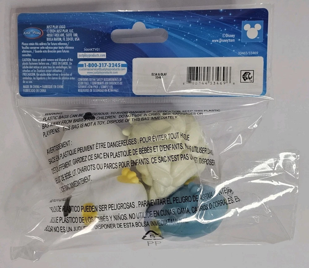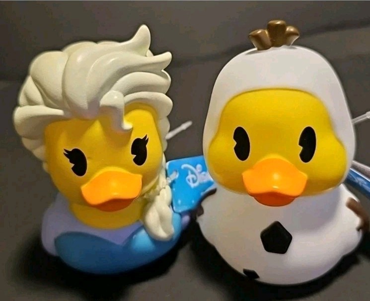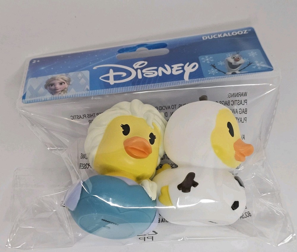The Disney Elsa & Olaf Duckalooz Rubber Duckie Jeep Duck Bath Toy 2 Pack is a fun and collectible item featuring beloved characters from the Disney franchise. These rubber duckies are modeled after Elsa and Olaf from the popular Disney movie, Frozen. Made in China, these 3" tall ducks are sure to delight fans and collectors alike with their charm and detail. Perfect for fans of Disney and contemporary collectibles, this set is a must-have addition to any Disneyana collection.