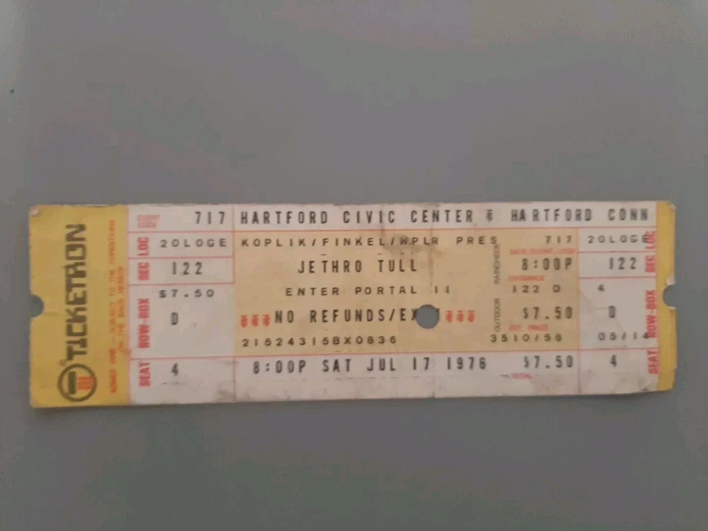 Jethro Tull Concert Ticket Hartford Civic Center July 17 1976 Good vintage condition. Some wear.