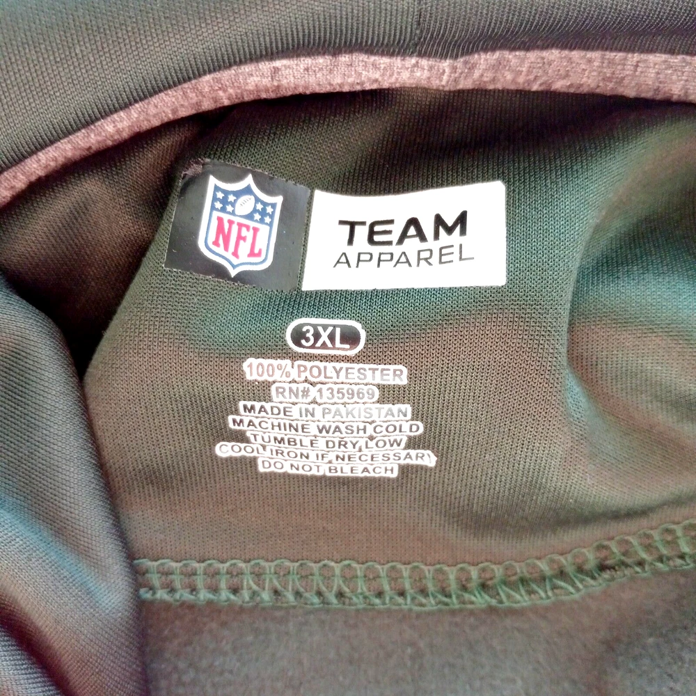 Show your support for the New York Jets with this officially licensed NFL Team Apparel hoodie. Made for men in size 3XL, this green hoodie features the team's logo, making it the perfect addition to any fan's wardrobe. Whether you're catching the game at the stadium or watching from home, this hoodie is sure to keep you warm and comfortable. Made of high-quality materials, it's both durable and stylish. Perfect for any football fan, this hoodie is a must-have for any Jets supporter.