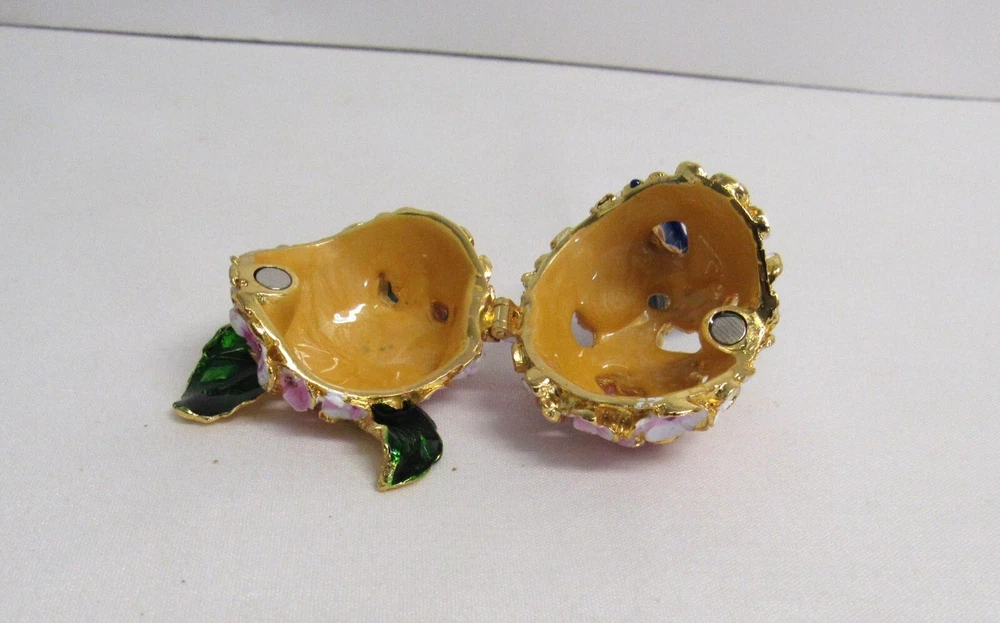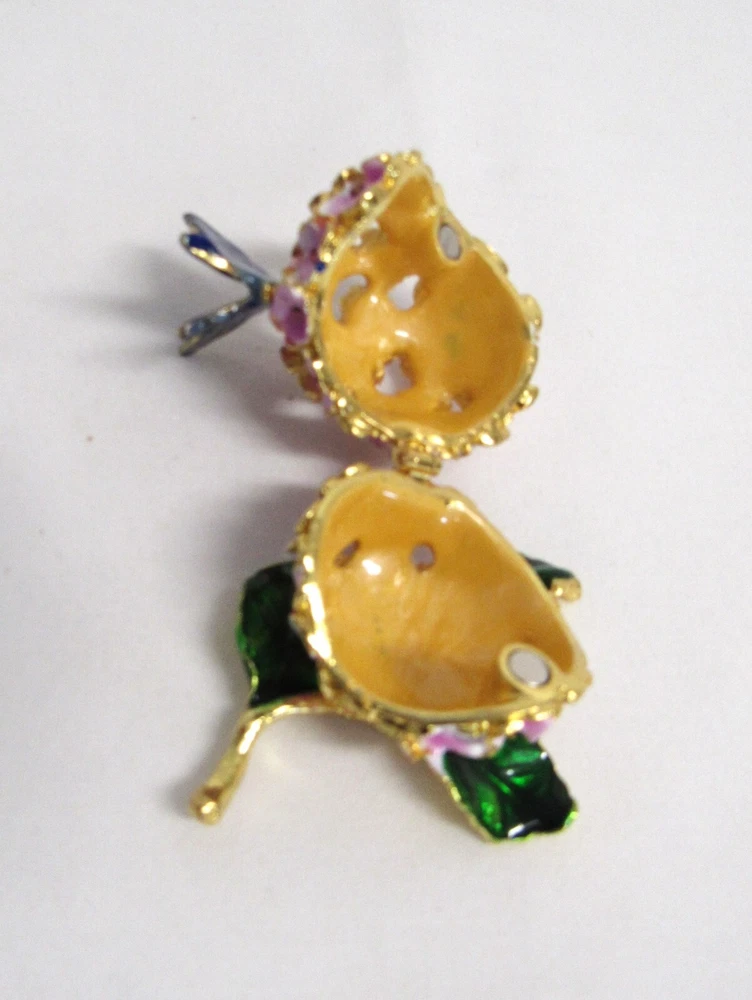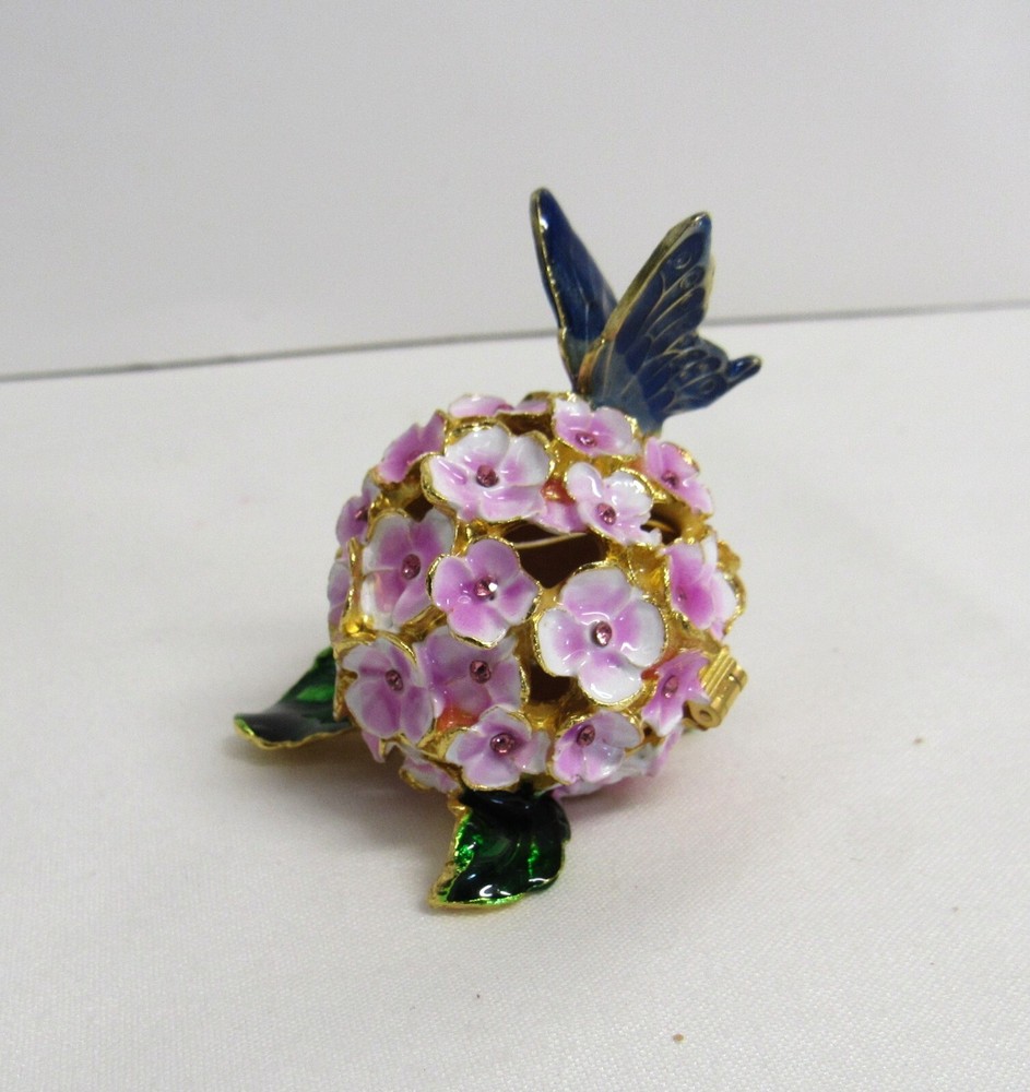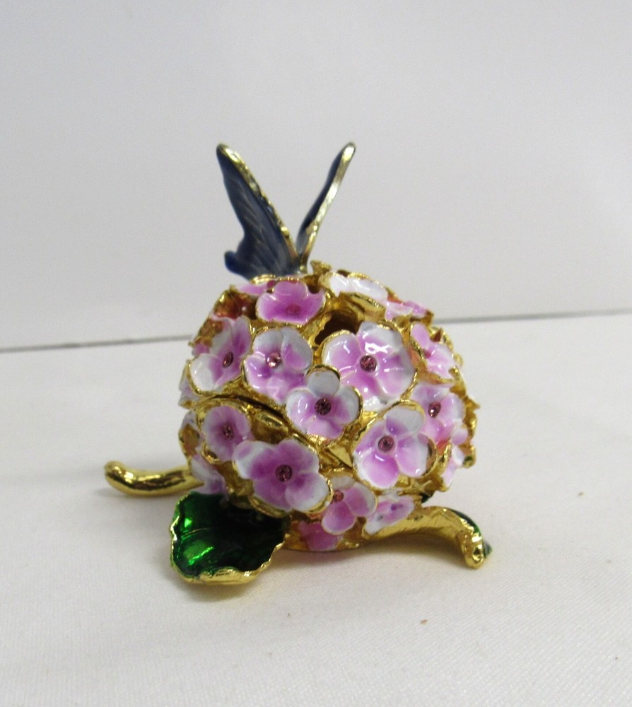 Jeweled Butterfly and Flower Enamel Rhinestone Hinged Trinket Box - EUC Hand Painted, Jeweled Flower w/Butterfly, Hinged Trinket Box with Magnetic Closure. This item is 2 inches high, 1 3/4 inches wide, 2 inches deep, in Excellent Used Condition. This piece is 3 1/2 inches deep when opened. Perfect addition to your Keepsake Box collection, and also makes a lovely gift to someone special. Ships via USPS Ground Advantage for flat amount . - Please review all pictures as these are part of the description of this item - Please pay for item within three days of purchase - Feedback is highly appreciated - Message me with any questions