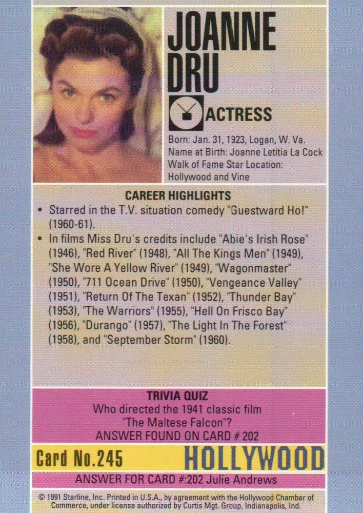 Find Out About My " 10 + " Deal By Clicking Here ! Hi, thanks for looking !!! This Trading Card is in pretty nice shape ( Please note this is a trading card, not a postcard ) !!! This card measures about 3 1/2 " x 2 1/2 ". Please see both scans, the terrific picture on the front, and the great information on the back !!! YES, I COMBINE SHIPPING !!! Buy between one and nine cards at a time and pay a shipping charge of just 99 cents. For orders of ten postcards or more ( or in this case Trading Cards ), please click the " 10 + " Deal link above ! PLEASE, CHECK OUT MY STORE !!! Have a Wonderful Day !!! Please note that in some cases wavy, multi-colored lines ( banding ) appear on the scanned image. These lines do not appear on the actual card !!! Hollywood Trading Cards ( Green ) 245 - 93013