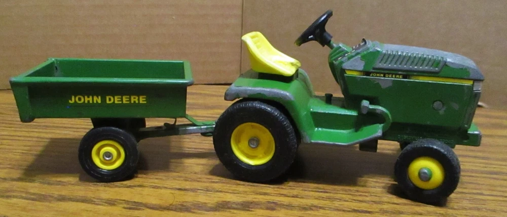 ERTL JOHN DEERE LAWN & GARDEN TRACTOR with DUMP CART / WAGON 1 /32 Scale Tractor Measures Approx. 4.5" x 2.5" x 3" Cart Measures Approx. 3.75" x 2" x 2" Both are made of die-cast metal. HARD TO FIND JOHN DEERE COLLECTIBLE! Inventory no. Ty-7636 **THIS IS A COLLECTIBLE TOY FOR 3 YEARS OLD & OLDER. NOT FOR SMALL CHILDREN.** We do combine shipping on same day multiple purchases if possible. Just message us for a combined invoice otherwise Ebay will automatically invoice you for full shipping charges. WE SHIP WORLD WIDE!! Packages shipped to a location outside the USA will pay higher shipping . International Buyers – Please Note : Import duties, taxes, and charges are not included in the item price or shipping cost. These charges are the buyer's responsibility. Please check with your country's customs office to determine what these additional costs will be prior to bidding or buying. If you are interested in Tractors & Farm or Construction Equipment, please check out my store & other auctions! THANKS FOR LOOKING!