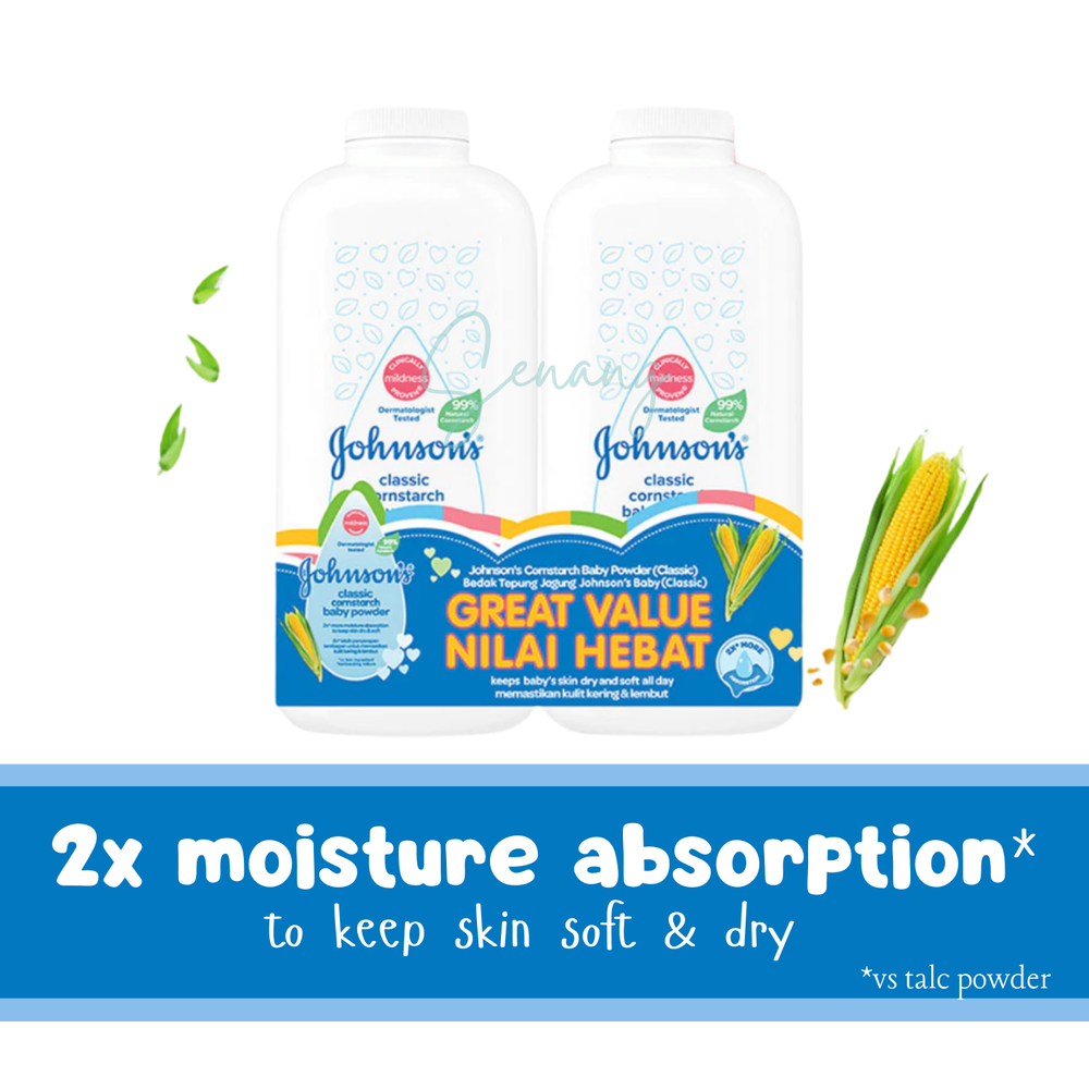 2X 500g Johnson's Baby Powder Classic Cornstarch 500g Pack Original twin pack