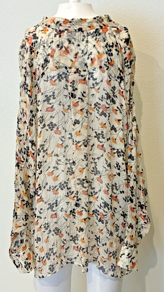 FREE PEOPLE Hold On to Me Contrast Floral Print Button Ivory Blouse Size XS NWOT
