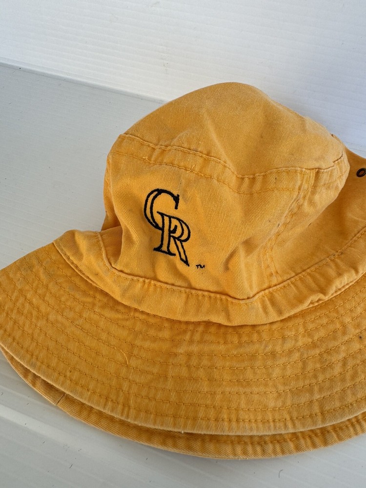 Show your support for the Colorado Rockies and enjoy a refreshing margarita with this Jose Cuervo bucket hat. The vibrant yellow color and reversible design make it a versatile addition to any wardrobe. Perfect for game day or a casual day out, this unisex hat is sure to be a hit. Featuring the iconic Rocky character and a fun baseball-themed design, this hat is a must-have for any fan of the Colorado Rockies. It's also a great gift for anyone who loves alcohol and baseball. Don't miss out on this unique and fun accessory that's perfect for any occasion.