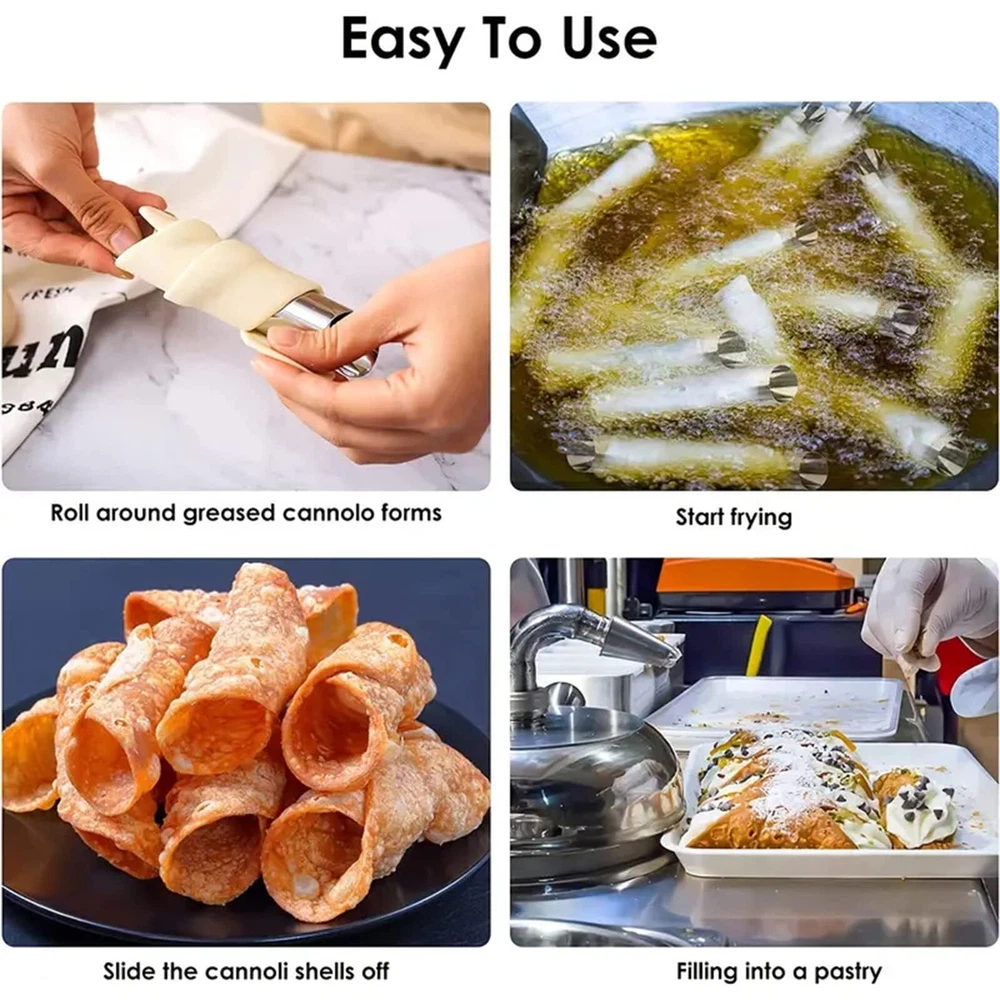 Joyeee 21 Pcs Cannoli Tubes Kits, Stainless Steel Cannoli Tubes Molds, 4.7 Inch Cannoli Forms Non-stick Cream Horn Molds for Danish Pastry Lady Lock Form, Cream Roll, Croissant High-quality material: Made of high-quality stainless steel. Anti-rust, sturdy and easy to clean. (Please dry thoroughly after washing). Easy to use: Wrap the molds with dough, bake in the oven or fry in oil. The hollow cannoli roll can be filled with fillings after baking. Widely used: It is a good Diy tool to fill with your favorite recipe. Great for making filled desserts or appetizers and baking cone-shaped pastry shells, like cream horn, French horn, popsicles, small ice cream cones, flaky pastries, pizza cones, waffle cones and shaping pizzelle, etc. Package include: 12 pieces of tube shape baking molds, 1 piece of cleaning brush, 1 piece of coupler, 6 pieces of Piping Tip, and 1 piece of reusable piping bag. Fun gift: Cream horn molds are good for DIY baking breakfast and afternoon tea, themed parties. You can even unleash your creativity and make cakes with your children. It is a delightful gift for women, mothers, daughters, friends, and baking enthusiasts. Shipping We offer FREE shipping on all orders! We ship within Three business days of payment, usually sooner. We use a selection of shipping services such as UPS, FedEx, USPS etc. We only ship to the lower 48 states, no APO/FPO addresses or PO Boxes allowed. Local pickups and combined shipping options are not provided at this time. Return You can return a product for up to 30 days from the date you purchased it. Any product you return must be in the same condition you received it and in the original packaging. Please keep the receipt. Payment We accept payment by any of the following methods: PayPal Please pay as soon as possible after winning an auction, as that will allow us to post your item to you sooner! Feedback Customer satisfaction is very important to us. If you have any problem with your order, please contact us and we will do our best to make you satisfied. Contact Us If you have any queries, please contact us via ebay. We usually respond within 24 hours on weekdays. Please visit our eBay store to check out other items for sale! Thank you for shopping at our store.