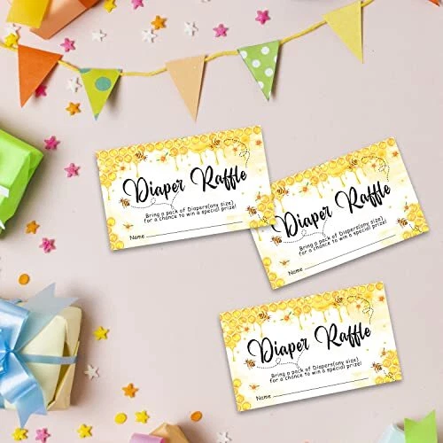 Return Policy Fast Delivery Trusted seller Bee Baby Shower Games, Diaper Raffle Tickets for Baby Shower, Diaper Raffle Sign, Baby Showers Decorations, Party Favors for Baby Showers Game Cards, 1 Sign & 50 Cards Per Pack Product Description Packing includes: You will get 1 folding sign and 50 tickets. Perfect for your Honey Bee baby shower decorations and supplies. FUN BABY SHOWER GAME: Baby Shower guests will love playing a diaper raffle - it's easy to do and helps Mommy-to-Be stock up on diapers before her baby arrives. Diaper raffle tickets are a great addition to any baby shower invitations. Add them to invites for traditional baby shower or a baby sprinkle, give them to Dad's friends for a diaper party or host an event with coworkers. Complete Set: Our kit includes everything you need for a successful diaper raffle game - 1 eye-catching sign and 50 beautifully designed cards. It's a hassle-free solution to make your baby shower planning stress-free. Easy to Use: The Game Kit is user-friendly and hassle-free. Simply display the sign prominently at your baby shower and distribute the stylish cards to guests. Thoughtful Keepsake: Beyond the excitement, our kit provides a meaningful keepsake for the mom-to-be. The charming design on the cards serves as a sweet reminder of the special day, creating lasting memories. Shipping Returns Payment Shipping Shipping is FREE to all addresses other than APO/PO boxes in the lower 48 states. All our stock ships from US-based warehouses. Shipped via USPS or UPS (depending on location and package weight) Unless stated otherwise, all orders will ship within 24-72 hours of your payment being processed. Check our feedback to see the great reviews of FAST shipping we offer. Returns Seller does not accept returns Payment We currently accept payment via eBay managed payments only. Once payment is cleared, we will dispatch your shipment within 1-3 business days. Please refer to the "Shipping" tab for more information regarding shipping speed to your destination.