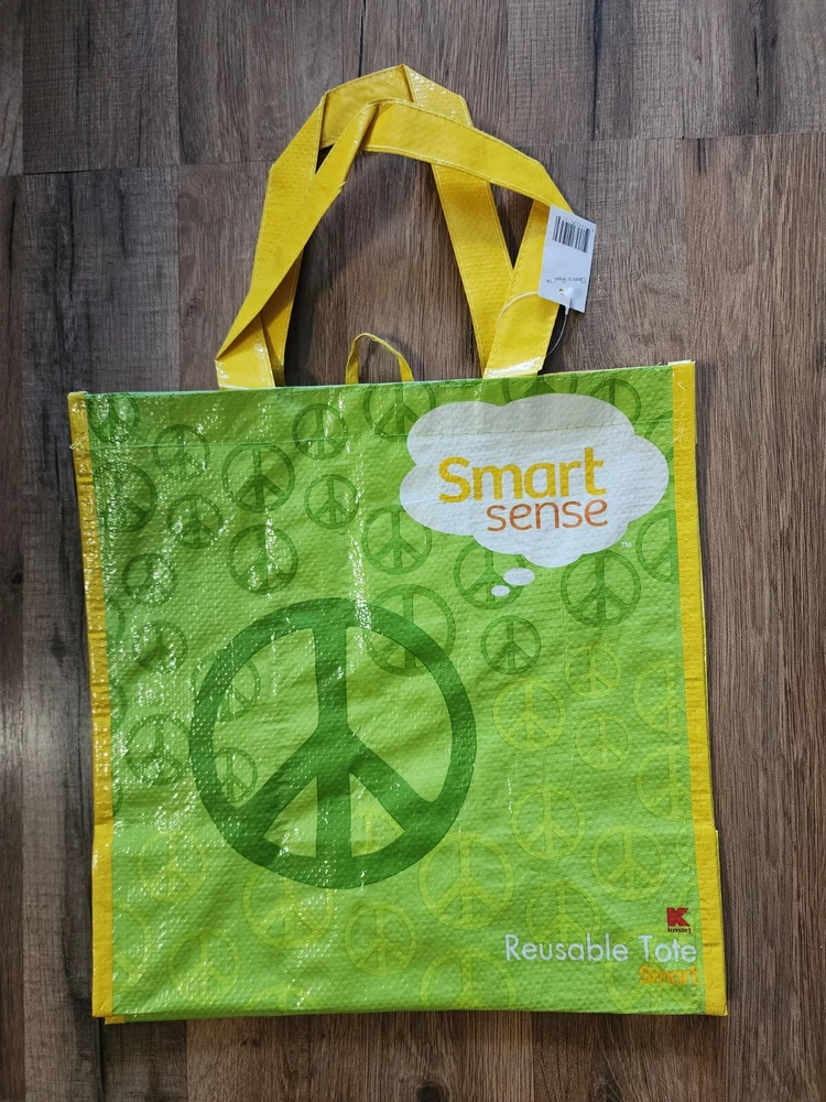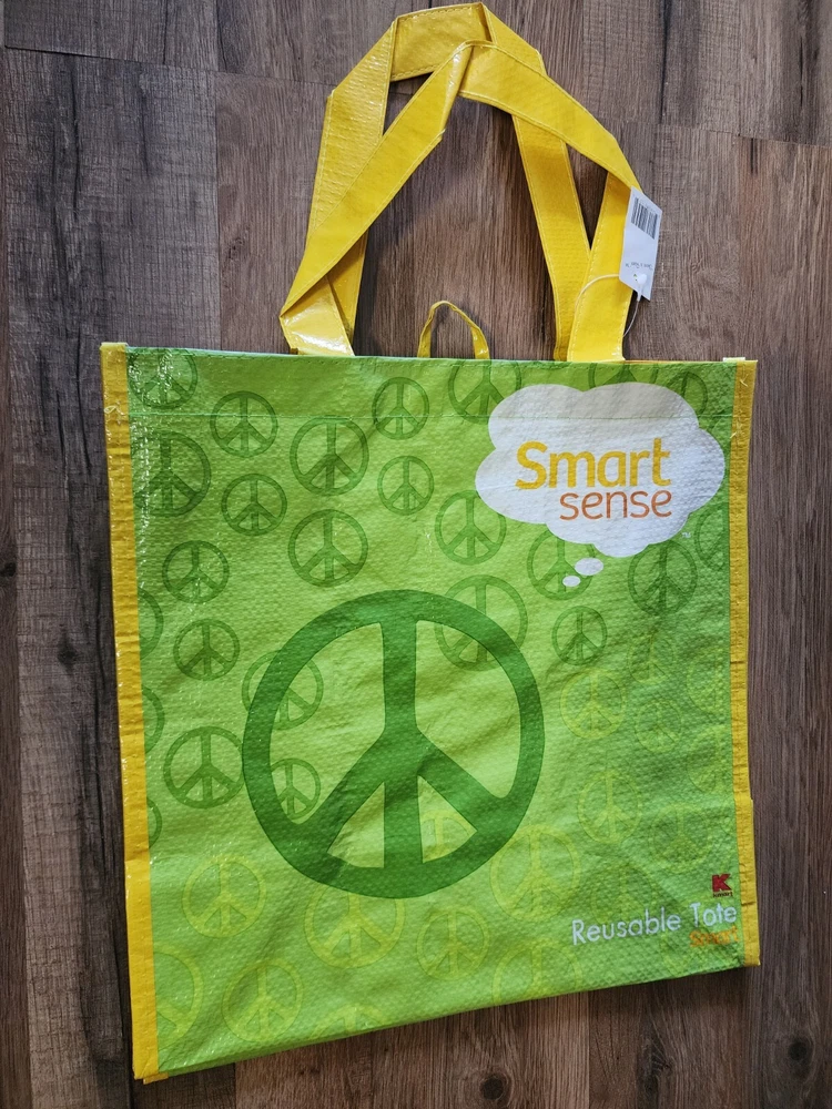 This K-Mart Smart Sense reusable tote bag is a must-have for any stylish and eco-conscious shopper. With its spacious medium size, it is perfect for carrying all your groceries and essentials. The bag features a trendy check pattern in multicolor and is made of high-quality nylon and canvas materials, ensuring durability and longevity. The bag is foldable and dishwasher safe, making it easy to store and clean. It has a height of 14 inches and a width of 8 inches, providing ample space for your items. The tote bag is perfect for any occasion and is sure to impress with its art deco style. Get yours today and make a statement while reducing your environmental impact!
