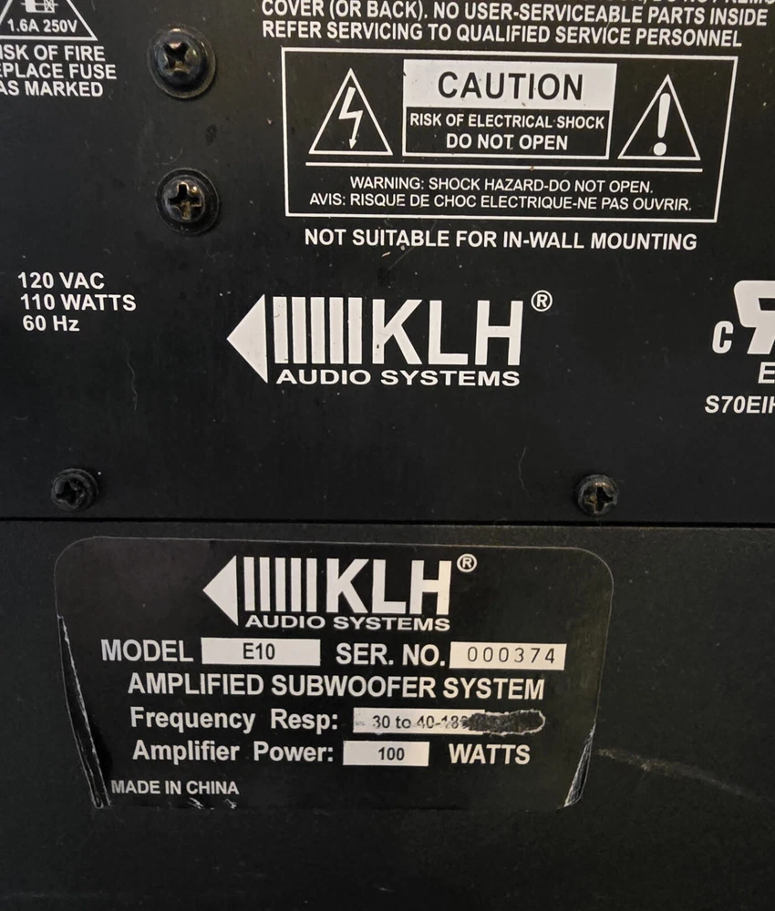 The KLH Audio Systems E10 Amplified Home Theater Powered Subwoofer is a high-end cube-shaped subwoofer that delivers 100 watts of powerful, deep bass for a home theater setup. With stereo L/R RCA audio inputs, this subwoofer is designed to enhance your audio experience with its sleek black design. The E10 is a wired subwoofer that boasts a premium build quality and is part of the KLH brand known for producing top-notch audio equipment. Perfect for adding rich, immersive sound to your home audio system.