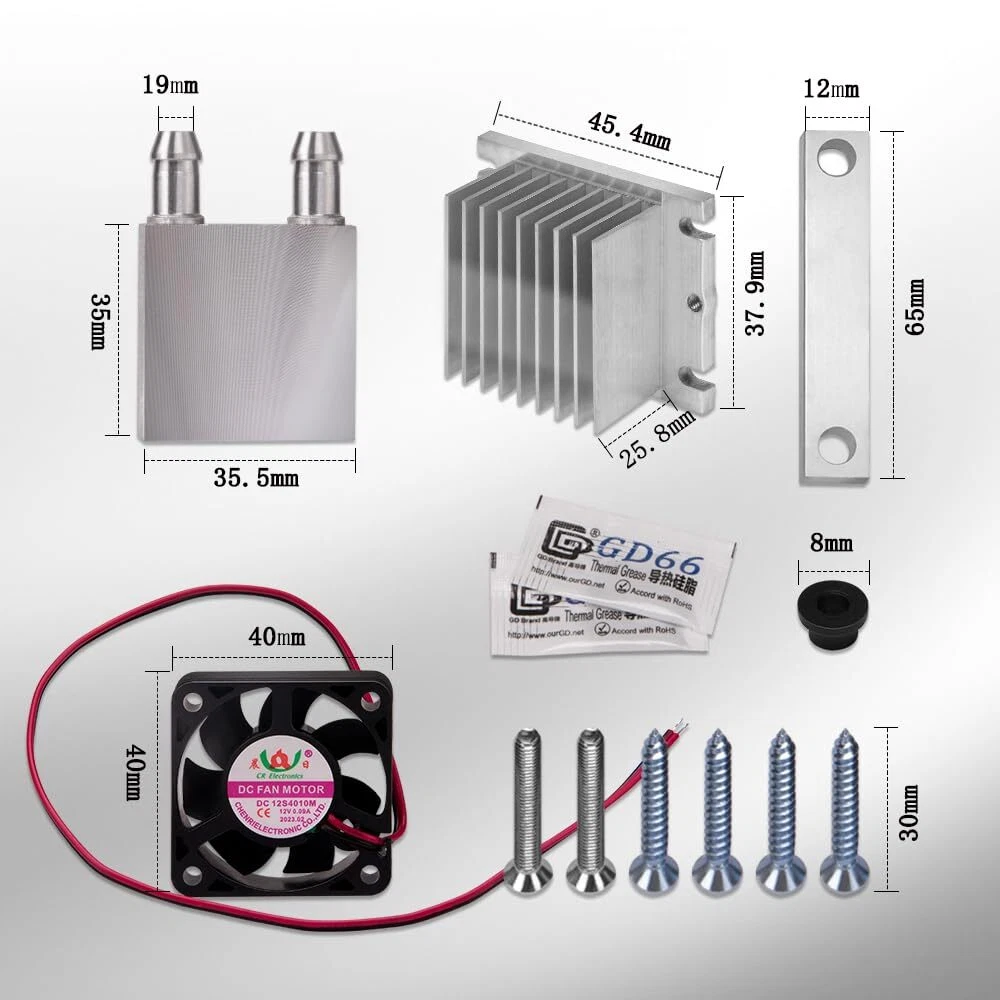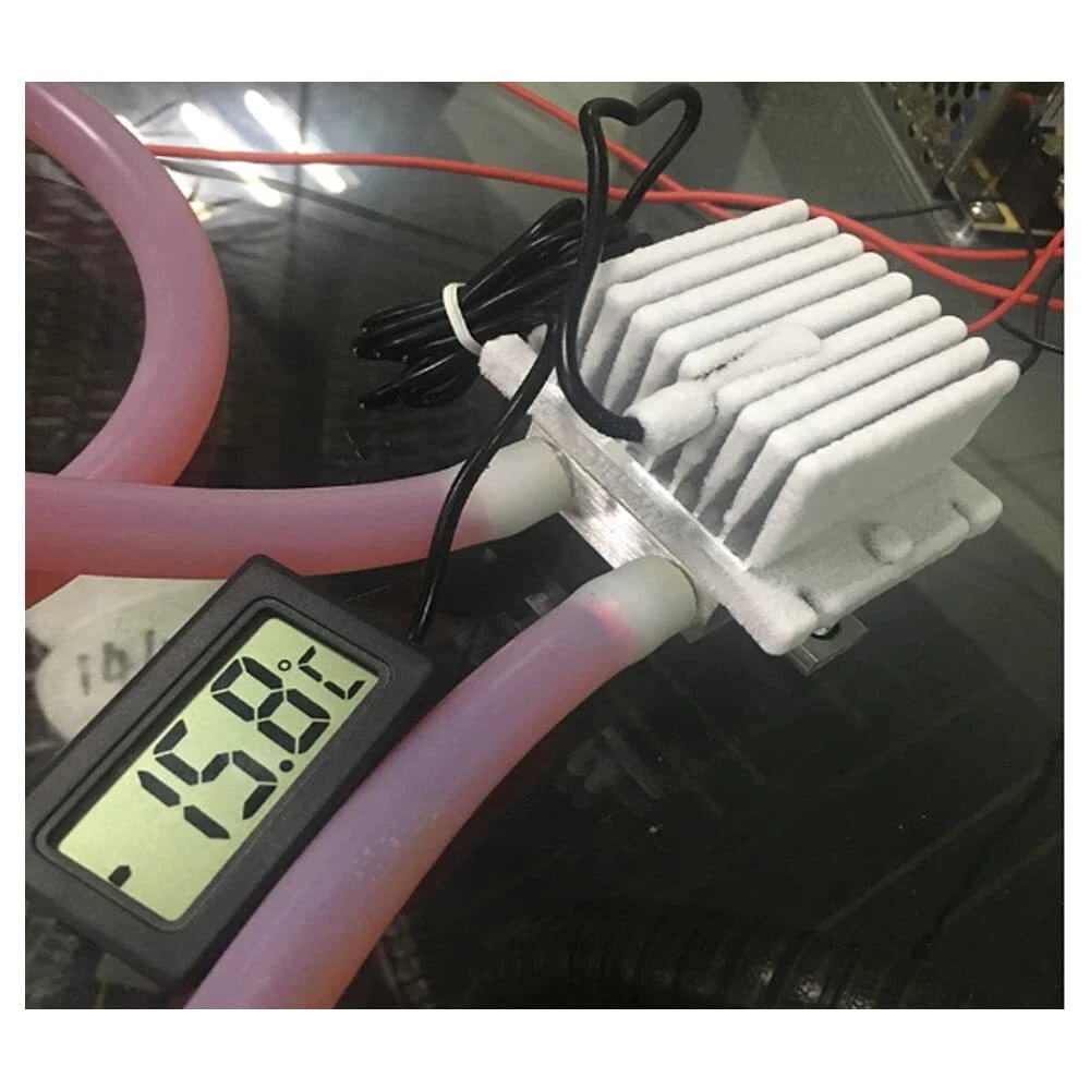 KOOBOOK 1Set 12V Thermoelectric Peltier Cooler Refrigeration Cooling Fan System Heatsink DIY Kit Silent designing, large air volume.Superior thermal performance.Special bottom design improves the efficiency of heat transfer.Complete sealed structure, isolating the moisture in the air This cooling fan is suitable for cooling in a small space. The main unit of the air-cooling equipment is water for heat dissipation.Great DIY kit for electronic enthusiasts in semiconductor cooling applications What you do get, is a sturdy heat sink, a small 12Vdc fan, a water heat exchange block, a bottom clamp bar, and some basic hardware(Peltier module not included) Water block connections fit 3/8" tubing just fine. The "base board" is a stronger bar 5mm x 12mm bar. Fan is 12Vdc 0.09A, heat sink fits the 40mm X 40mm water block well, it could fit up to 45mm X 49mm Note:There is nothing in the kit that is "thermoelectric" and nothing that "refrigerates".You assemble it yourself,with your own heat sink compound.It is suitable for a 12706 sized module Specifications: Type: semiconductor cooling fan Power: 72W Voltage: 12V Note: The refrigeration film is not included in this kit, please prepare it by yourself.(it is recommended to use 12706 (72W)) The DC power is also not included in this kit. We highly appreciate all customers opinions to improve the selling, also if anything you unsatisfied, please contact us for probable best solution. Package Includes: 1Set 1 * Conduction Module 1 * Water Block 2 * Thermal Grease 1 * Fan 1 * Base Board 6* Screws Shipping We offer FREE shipping on all orders! We ship within Three business days of payment, usually sooner. We use a selection of shipping services such as UPS, FedEx, USPS etc. We only ship to the lower 48 states, no APO/FPO addresses or PO Boxes allowed. Local pickups and combined shipping options are not provided at this time. Return You can return a product for up to 30 days from the date you purchased it. Any product you return must be in the same condition you received it and in the original packaging. Please keep the receipt. Payment We accept payment by any of the following methods: PayPal Please pay as soon as possible after winning an auction, as that will allow us to post your item to you sooner! Feedback Customer satisfaction is very important to us. If you have any problem with your order, please contact us and we will do our best to make you satisfied. Contact Us If you have any queries, please contact us via ebay. We usually respond within 24 hours on weekdays. Please visit our eBay store to check out other items for sale! Thank you for shopping at our store.
