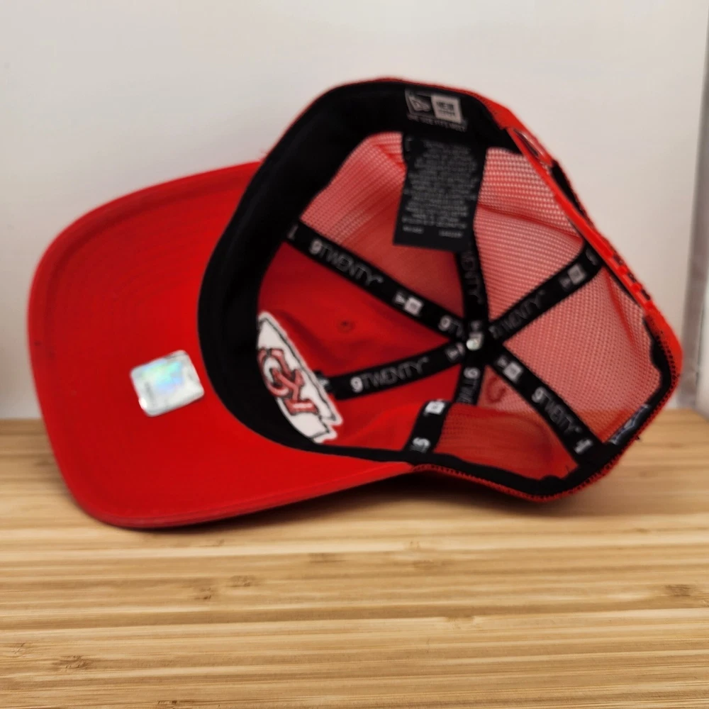 Show off your love for the Kansas City Chiefs with this stylish trucker hat from New Era. The red cap features the team's logo patch prominently on the front, making it a must-have accessory for any fan. The snapback style ensures a comfortable fit for all head sizes, while the mesh design provides breathability for those warmer days. Made in Vietnam, this high-quality hat is built to last and is perfect for any occasion. Whether you're watching the game at home or cheering on the Chiefs at the stadium, this hat is sure to make a statement. Get your hands on this officially licensed product and show your support for the team in style.