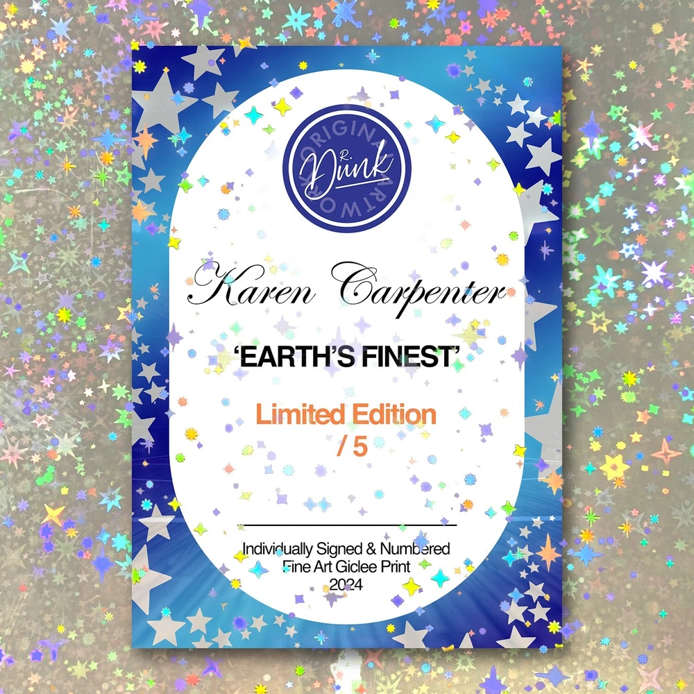 Karen Carpenter Holographic Earth's Finest Sketch Card Limited 1/5 Dr. Dunk You are looking at a fine art giclee print by Dr. Dunk. This limited edition original collectible sketch card will be signed and numbered on the back by the illustrator before shipping. Standard trading card size 2.5'' x 3.5'', hand crafted on 15mil glossy card stock. Comes in brand new top loader and fit sleeve. For custom designs, please send a message. *To ensure fair competition for jersey # match, each card starts at #1 and the next number is listed after it sells. Add your favorite cards to your watchlist for a better chance to secure your number. Listing Serial #2580