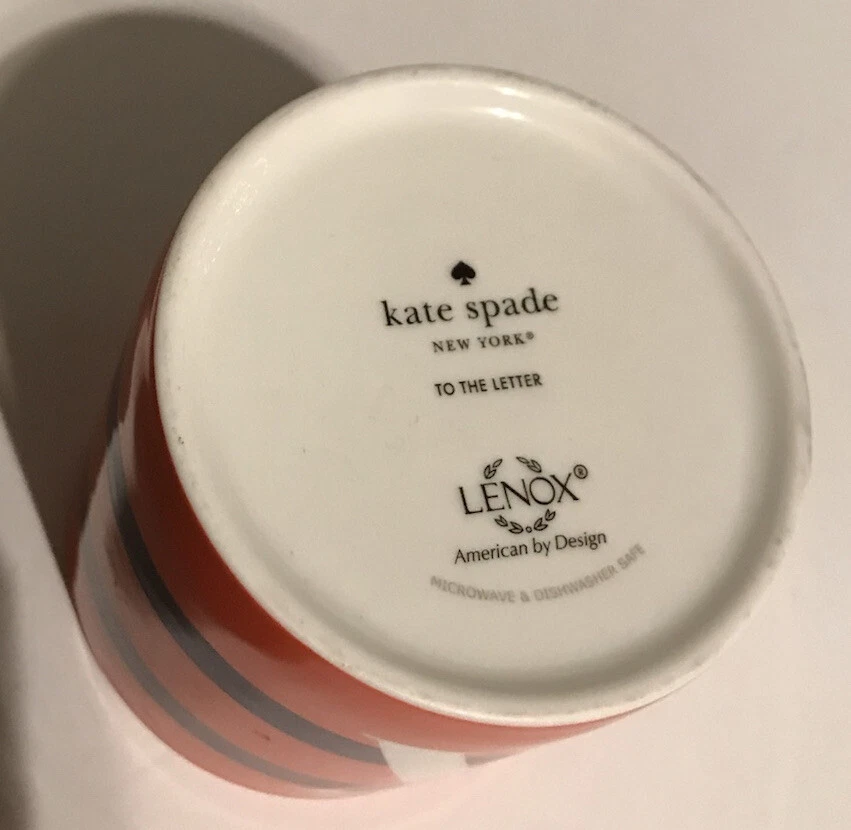 Upgrade your morning coffee routine with this stylish and sophisticated Kate Spade Lenox "K" Letter Porcelain Mug. The 12 oz. capacity allows for a generous pour of your favorite hot beverage, while the round shape and art deco style adds a touch of elegance to your mug collection. Crafted from high-quality porcelain, this mug is both microwave and dishwasher safe for easy cleaning and everyday use. The glossy finish and striped pattern make it a great addition to any kitchen decor, while the printed backstamp and designer theme add a touch of luxury. Perfect for all occasions, this mug is a must-have for any coffee or tea lover.