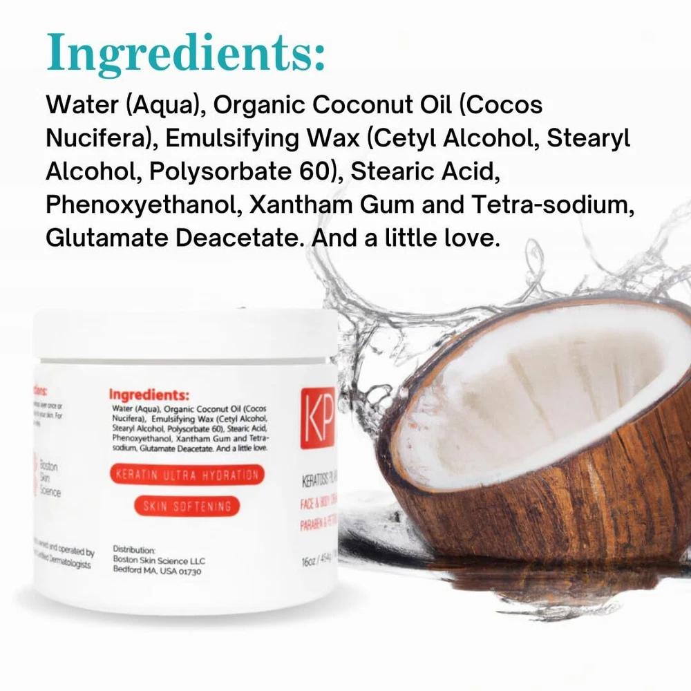 is a dermatologist-developed skin cream that fights Keratosis Pilaris (KP) or “chicken skin” and Eczema from a different perspective. We removed the harsh acids and created a rich emollient from very few, but critical, organic ingredients. The result is the Keratin Ultra-Hydration effect, leading to improved dermal and epidermal moisture content, which leads to the ideal skin smoothness. We have ensured that each ingredient is truly necessary and you will find that we have the shortest ingredient list on the market with only 7 critical ingredients in order to treat the rough red bumps that appear most commonly on arms and thighs. The harsh acids most commonly used in all other keratosis pilaris products are Alpha-Hydroxy, Beta-Hydroxy, and Lactic acids. We know that these acids cause more redness, burning and irritation by causing keratin destruction (sometimes referred to as exfoliation). This is the reason why most people cannot tolerate and ultimately stop using those products after a few weeks or months. We also take pride in our formula and the cream synthesis process for smooth renewing skin care. Never Tested on Animals Made in Oregon,USA at an FDA registered lab Paraben Free Vegan Organic Natural BPA Free Acne Moisturizer 16oz / 454g Jar is the largest size for creams in this category. DIRECTIONS Apply a thick layer daily after showers to those most bothersome areas like the back of the arms and thighs. At least three to six months of use is ideal. Voted BEST BODY LOTION FOR KP by NewBeauty (Spring 2022) & as seen in Cosmopolitan - CARE for your skin, don't punish it for having keratosis pilaris. is a lab tested, effective cream for "chicken skin" that uses keratin ultra hydration to get rid of your bumps. Great kp treatment for bumpy skin treatment. Developed by a board-certified U.S. dermatologist who uses this kp bump lotion himself daily, with exceptional results. lotion is ideal for adults, and babies. It was developed for extremely sensitive, eczema-prone skin or individuals looking for alternatives to keratosis pilaris scrub. Exfoliation is the EXACT OPPOSITE of what your KP needs – acid exfoliation is a 50-year-old approach based on outdated medicine. Put away the exfoliator and scrubber: help your skin return to a natural state instead of using chemicals to burn it off. Works great as a keratosis pilaris treatment for . THE ONLY ACID-FREE KERATOSIS PILARIS CREAM - our no-scrub formula doesn't use harsh acids like Alpha-Hydroxy, Beta-Hydroxy, and Lactic acids because they all cause irritation, dry skin, stinging, and pain. It's a great alternative to keratosis pilaris soap. 100% SATISFACTION - If at any point - for whatever reason - our product does not meet your expectations, don’t hesitate to us! We’ll either you in full or send you an additional product ! Even beyond Amazons regular 30 day return window! This keratosis pilaris exfoliator alternative will not disappoint.