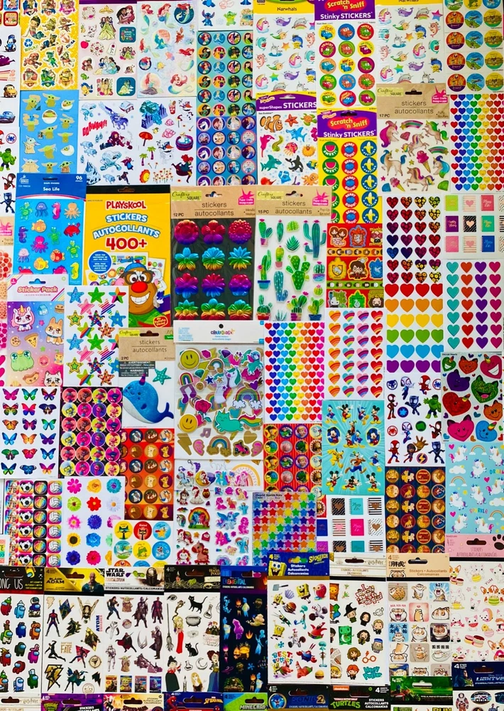 HUGE Mixed Sticker Lot | The Ultimate Kit | Qty. 800+ Stickers | High Quality Only! Fun Assortment of Puffy, Scrapbook, Cartoons, Bubble, Pop Up Stickers Packs For Everyone! You will receive 35+ Sticker Sheets of beautiful colorful assortment. The Pack will include 800+ Stickers overall! I have included a large variety of pictures of the assortment available. The pictures give you an idea of what you will be receiving. Please Note: You will not receive everything pictured. Please contact me with any special requests. This HUGE Variety of fun designs stickers can be used in parties, classroom, school and home, good for reward for students, potty training, adding inside a birthday card, game activities, entertaining toddlers, etc. Perfect Gifts for Kids & all Occasions: Can be given as a gift for kids, girls, boys, toddlers, teens, students, friends, and classmates, they will love it!