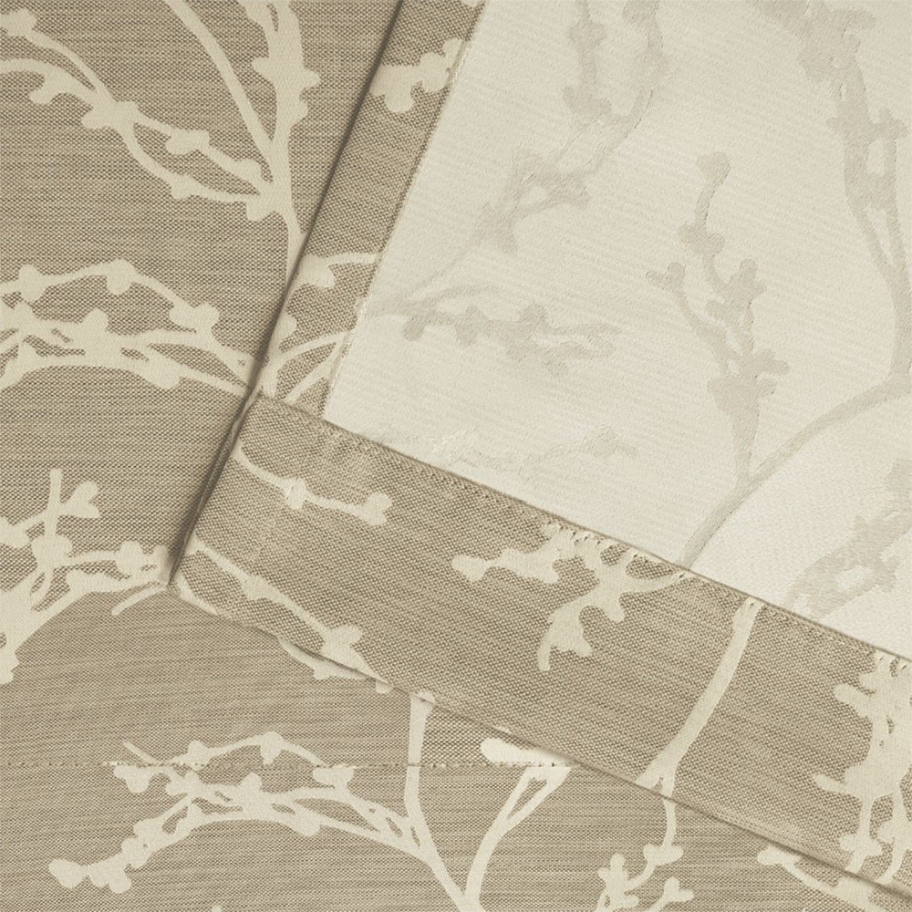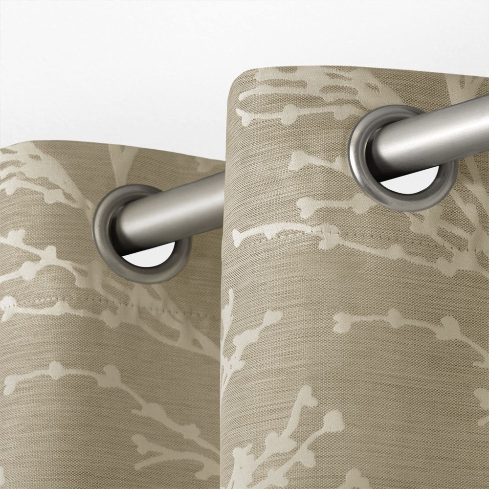 Product Description Kadomo curtain panels offer textured horizontal stripes that will add an extra dimension to your decor. These panels feel rich to the hand as well as provide a modern fashion look to any room in your home. Kadomo curtain panels offer a lightweight construction that allows minimal natural light to filter in your room. These panels will drape beautifully from your favorite curtain rod by 8 matte silver, 1.25" diameter grommets per panel. Our curtain panels are perfect for any living room, bedroom, family room, dining room, bathroom, and office. Our stylish designs will suit any window space. From the Manufacturer Amalgamated Textiles USA, Inc, is North America’s leading supplier of home textiles and ready-made drapery by delivering high fashion designs, patterns, varying textures, and colors in an “affordable luxury” quality that today’s consumers expect. From classic solids to today’s top fashion trends, you are sure to find window panels to fit any look, mood, or style to complete your home décor project. We offer an array of fabric constructions as well, including jacquards, linens, burlap, sheers, thermal/blackout, silk and faux silks, polyester and poly blends, and cotton and cotton blends. These constructions are offered in varying designs and colors including solids, prints, textures, thickness, lengths, widths, and burnouts. Like millions of customers already have, let our window coverings be the anchor of each room in your home! Kilberry panels offer a natural branch pattern on luxurious thermal insulated fabric Includes: (2) curtain panels, each measuring: 52"W x 84"L 8 matte silver grommets per panel; inside diameter for curtain rod measures 1-5/8" - panel sewn with 4" heading; 3" bottom hem Recommend ordering 2 to 3 times rod width for proper look and fullness Care instructions: Spot clean and/or hand wash window treatment curtains. Use iron on low heat to straighten and remove creases/wrinkles from packaging.