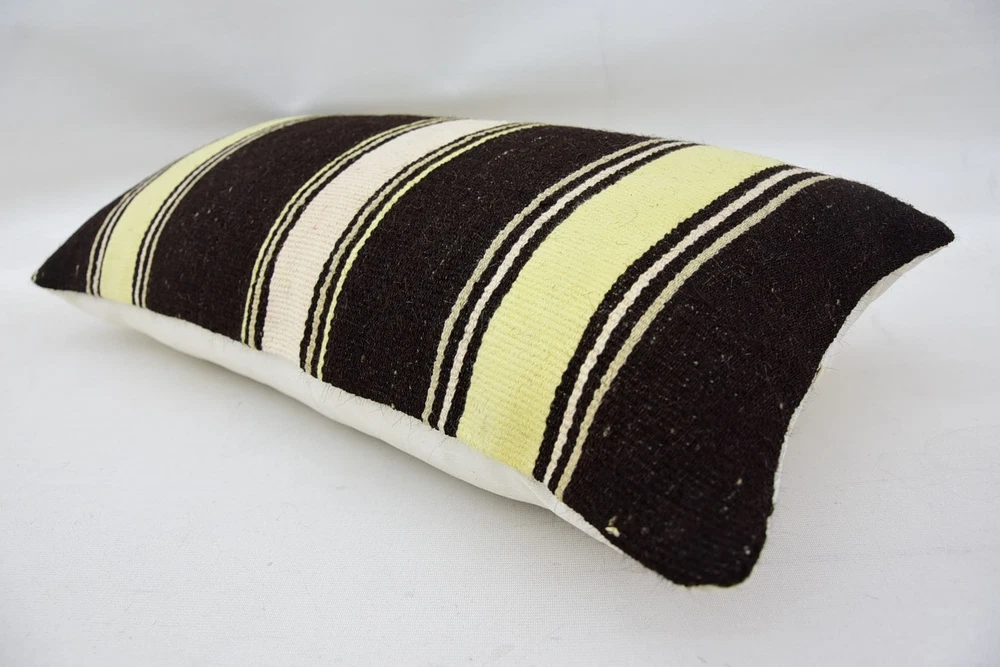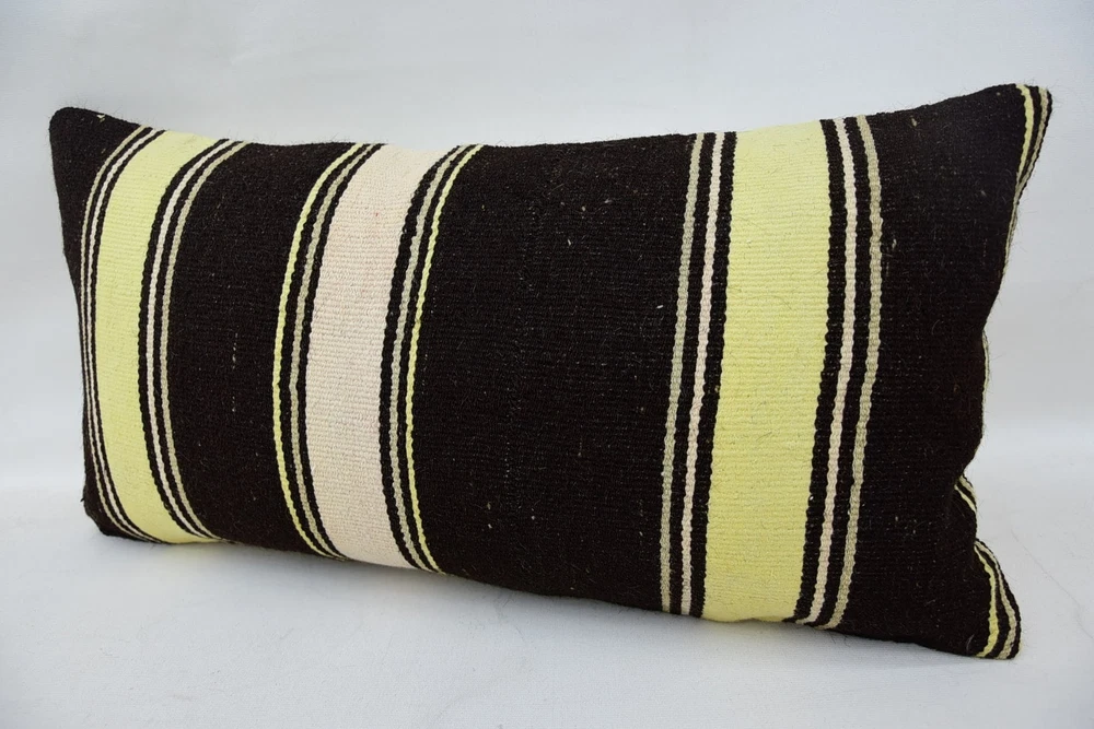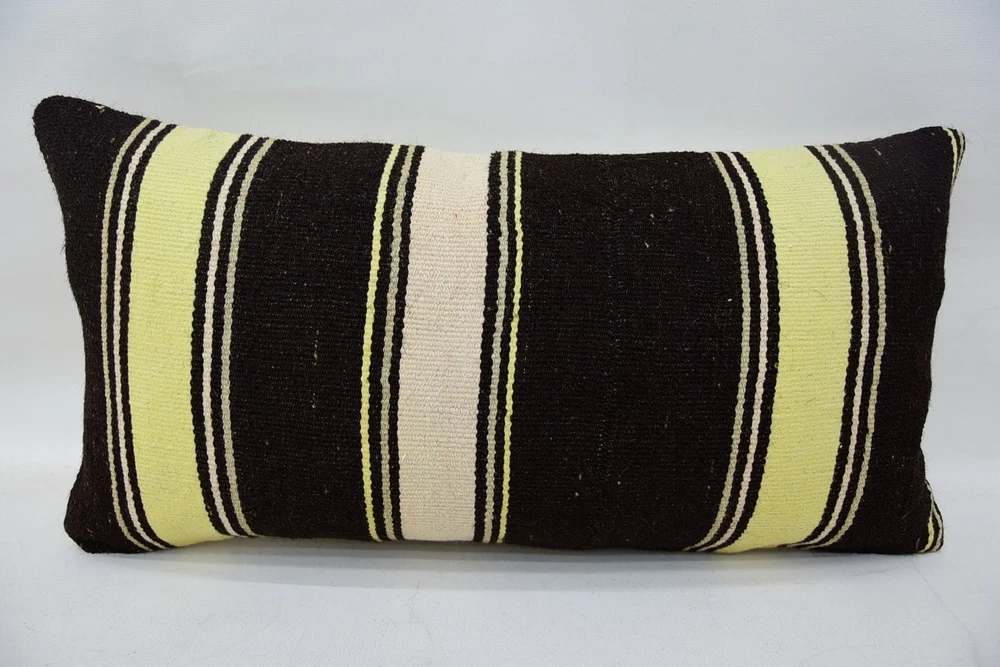 Kilim Pillow Cases, Throw Pillow, 12"x24" Brown Cushion, Body Pillow