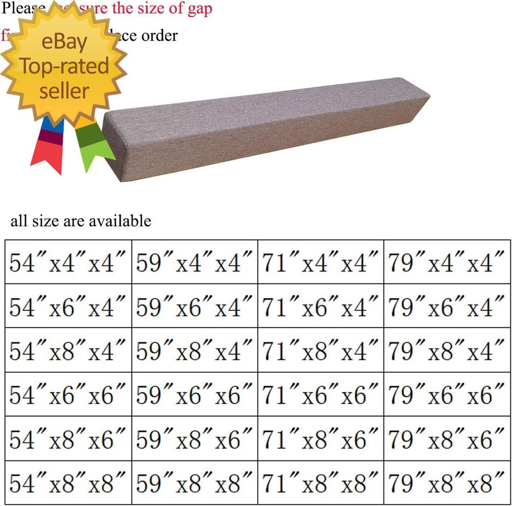 King Bed Gap Filler for headboard Space Filler Bed Crack Pillow headboard stoppers for Wall Bed Wedge Pillow Stopper 79x8x6 Inch Measures: 79x8x6 IN 【※ Bed Gap Filler Size】 bed gap filler for headboard fits perfectly to your bed gap or sofa gap. ★ NOTE: As bed crack pillow is vacuum packaging, please remove the vacuum bag, and shake vigorously every place for a while, and headboard space filler will restore its original shape after 48 hours later. 【※ Premium quality Material】Mattress extender cover is made of premium quality linen fabric, breathable, delicate touch; insert is filled with upgraded environmental-friendly foam, excellent density and high resilience can give you long-lasting comfort when leaning against the headboard. 【※ Removable & Washable Cover】Mattress gap filler cover are made with zippered cover which is removable and washable. Zipper lock keeps cushion tight closed and assists in cushion stuffing. 【※ More Practical & beautiful】 All size include 39 inches, 54 inches, 59 inches, 71 inches and 76 inches (Twin, Full, Queen, King, California King), give you more option. Putting this bed crack pillow during bed gap or sofa gap, will reduce the trouble of dropping things for you, and let your home more beautiful. 【※ Multi-purpose Usage】This soft flexible pillow can be used as wedge headboard pillow, bed gap filler, mattress extender, mattress gap filler. Works great between wall and mattress, or as sofa back support cushion. You can even use it as foot rest for under desk.