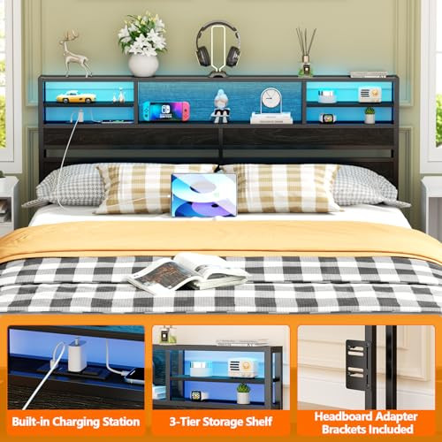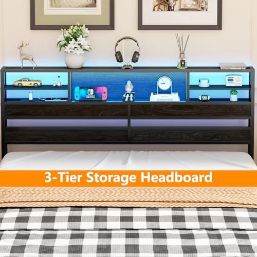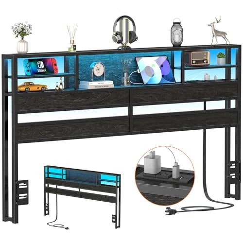 This headboard is a game-changer! The built-in RGB LED lights create the perfect mood with customizable colors and brightness via the app or remote. Love the convenient USB ports and outlets for charging devices, plus the sturdy 3-tier shelves add so much storage. The adjustable height fits perfectly, and the modern design elevates my bedroom. Fast shipping and great seller—highly recommend!
