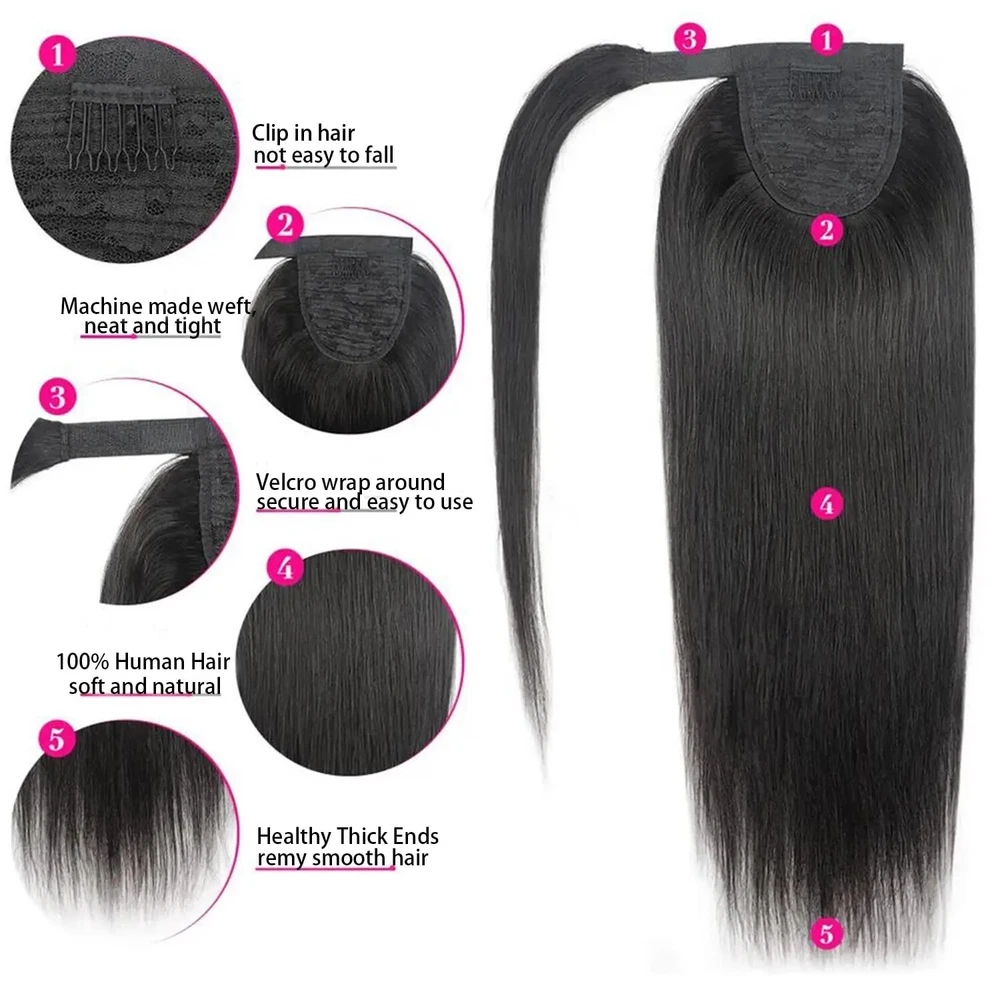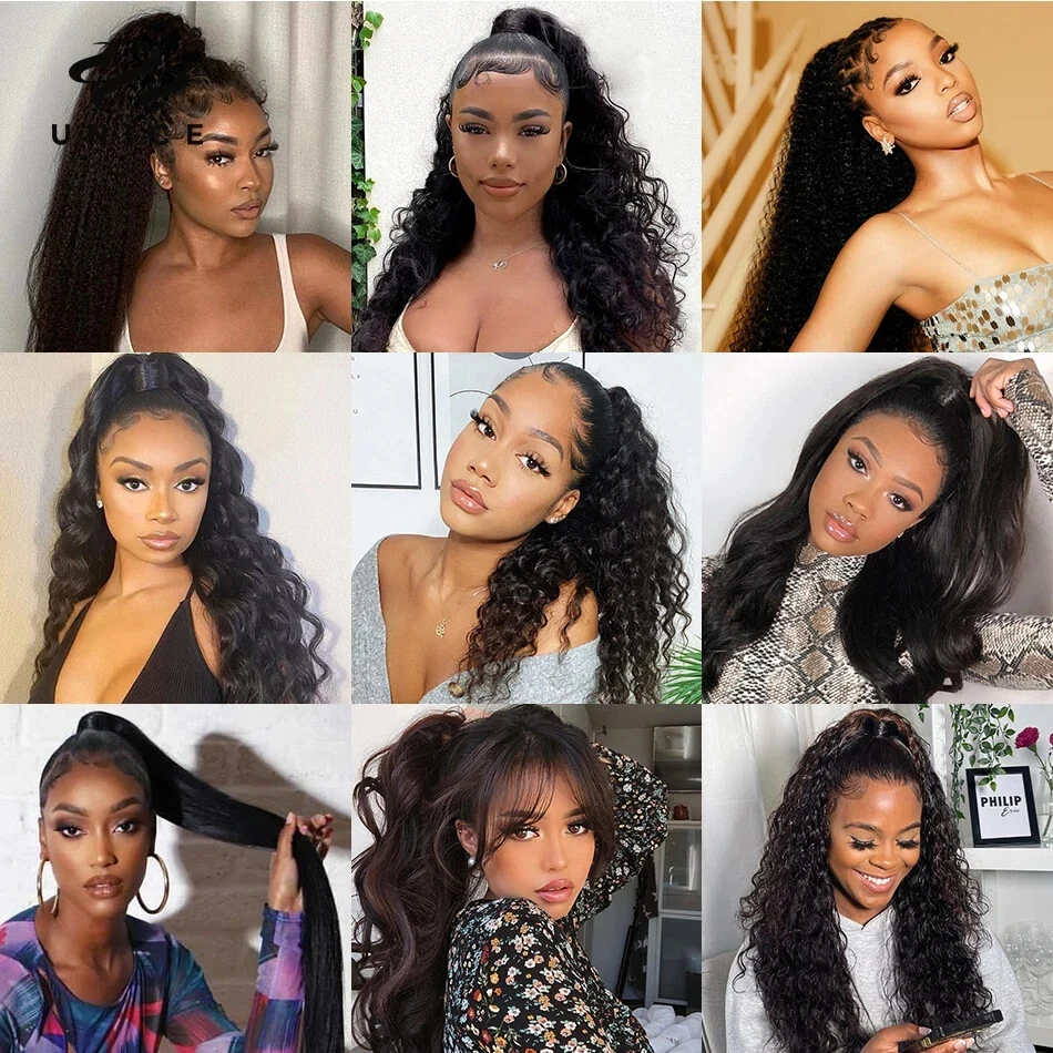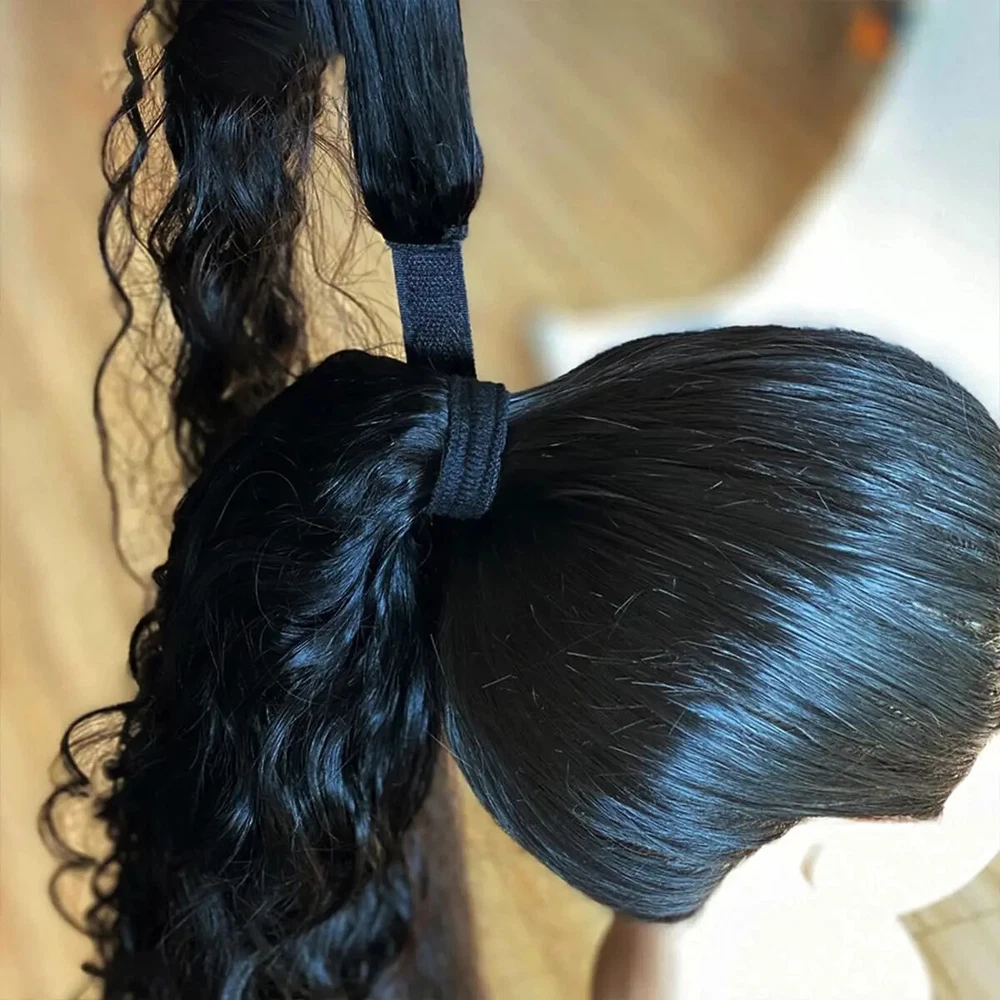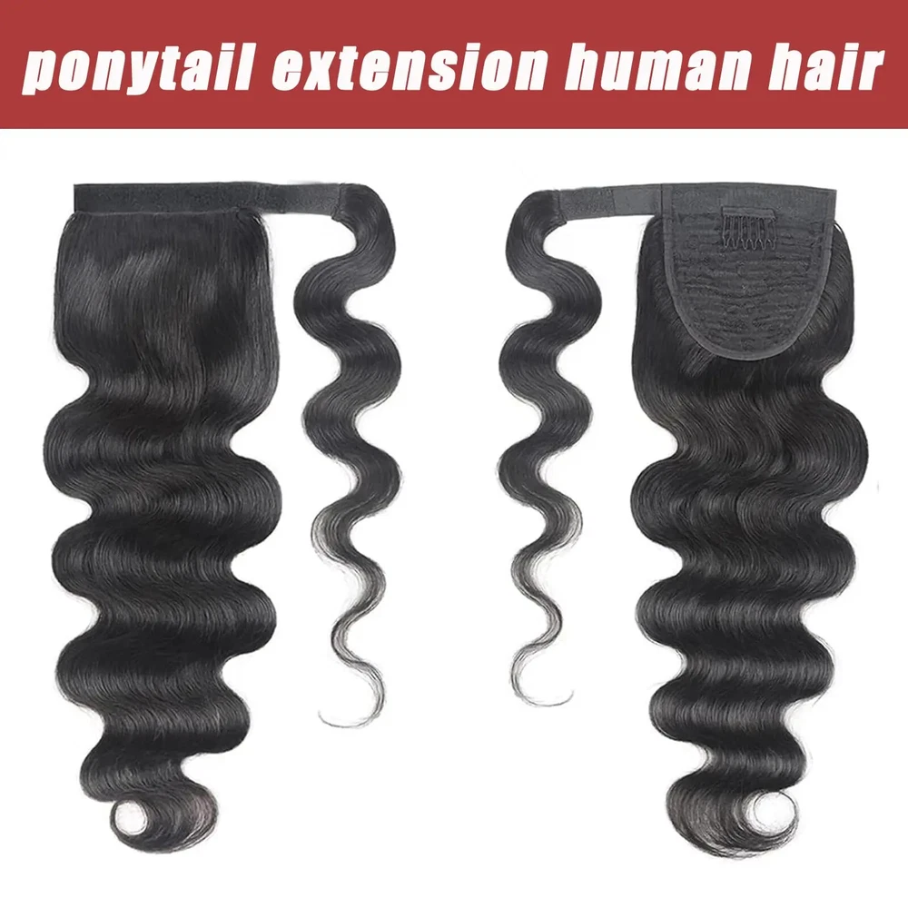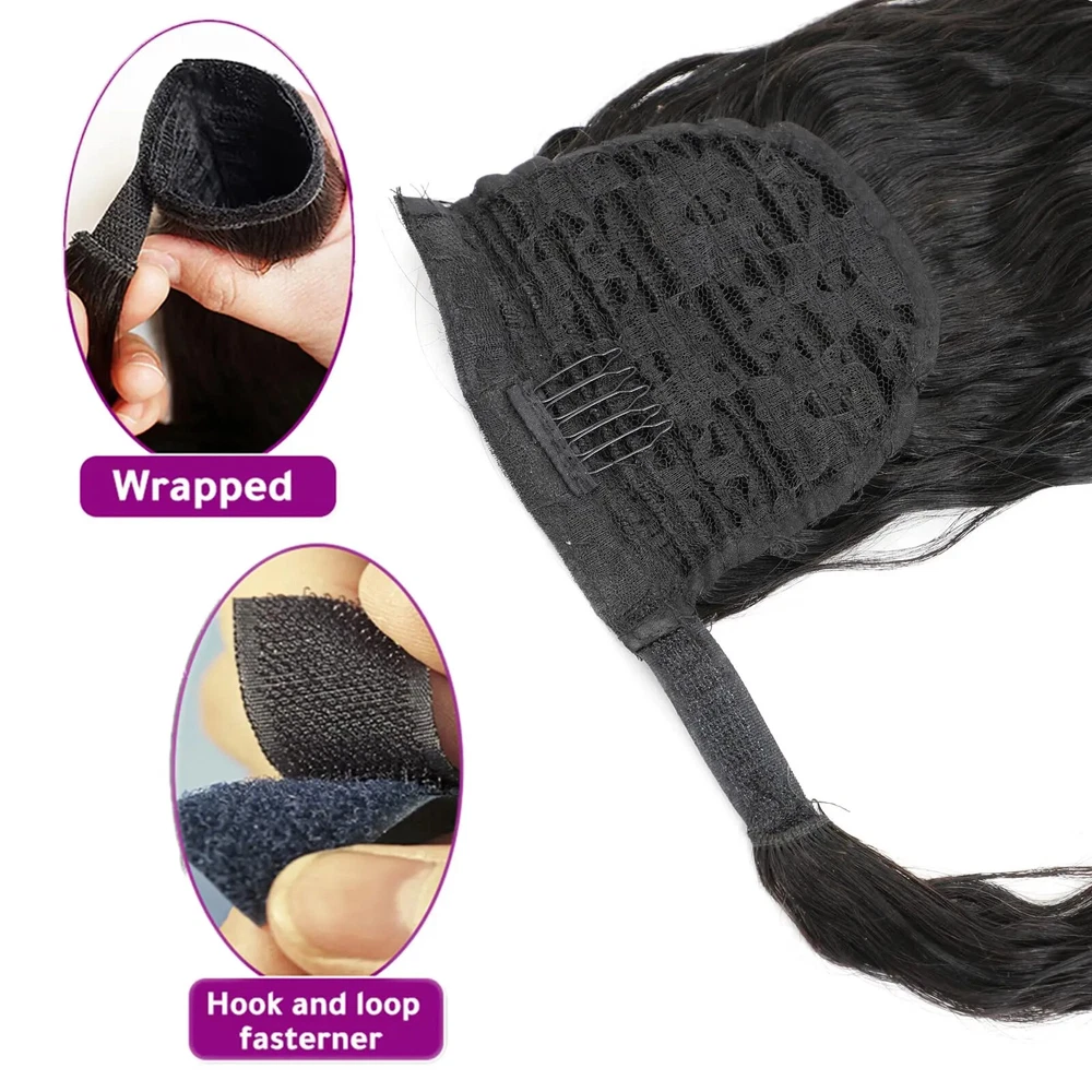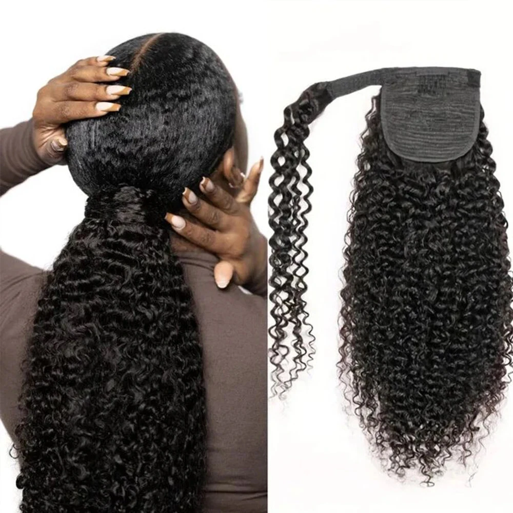 Kinky Curly Human Hair Extensions Wrap Around Body Wave Ponytail With Clip Remy