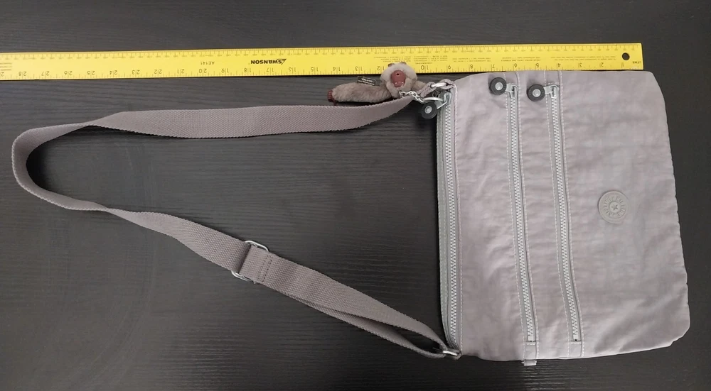 Handmade: No Lining Color: Gray Fabric Type: Rayon Pattern: Solid Brand: Kipling Finish: Matte Bag Height: 10 in Bag Width: 12.5 in Style Subtype: Messenger Accents: Strap Accent, Zipper, Logo gtin13: Does not apply Occasion: Business, Casual, Formal, Party/Cocktail, Travel, Wedding, Workwear Product Line: Kipling Alvar Crossbody Hardware Color: Silvertone Customized: No Model: Kipling Alvar Crossbody Style: Crossbody Exterior Material: Cotton, Metal, Nylon Department: Women Personalize: No Country/Region of Manufacture: China Bag Depth: 1.5" Accessories: Key Chain Features: Adjustable Strap, Cross-Body Strap, Inner Pockets, Lightweight, Outer Pockets, Pockets Vintage: Yes Handle/Strap Color: Gray Size: Large Hardware Material: Aluminum Theme: 80s, 90s, Classic, Colorful, Designer Handle Style: Crossbody Strap Lining Material: Fabric Handle/Strap Material: Nylon Strap Drop: Adjustable Closure: Zip Character: Blue, Dusty, Happy, Monkey UPC: Does not apply Shape: Square Exterior Color: Gray