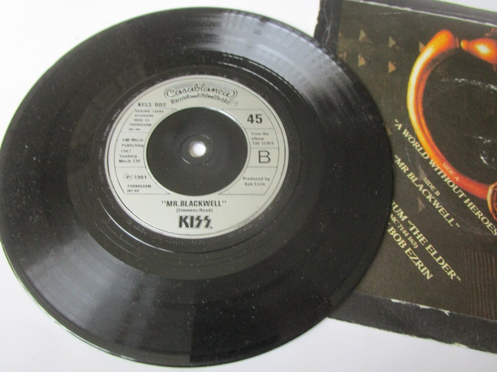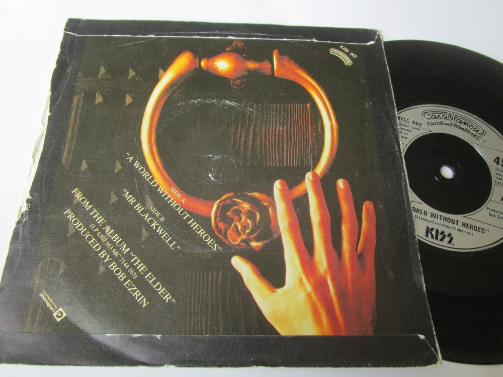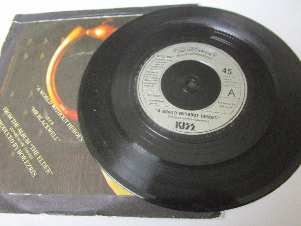 Kiss – A World Without Heroes Casablanca KISS 002 Injection Labels Picture sleeve 7inch Vinyl 45rpm Single Tracklist A A World Without Heroes B Mr Blackwell