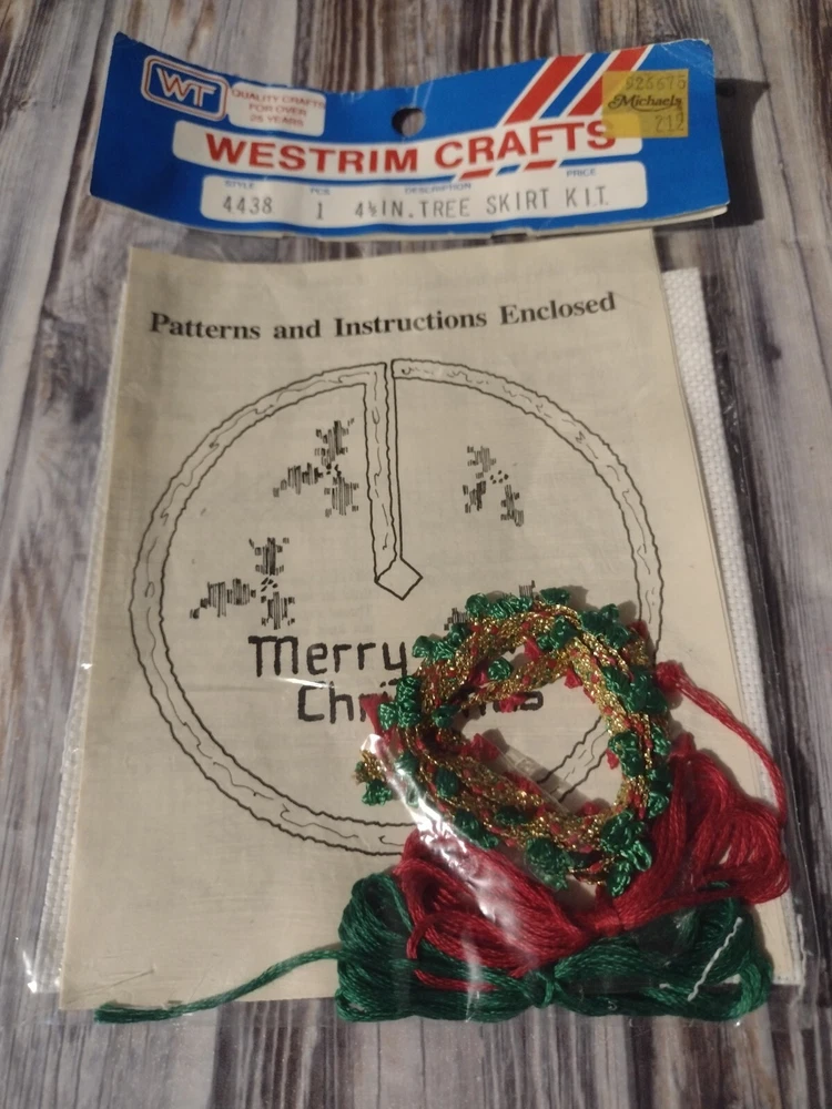 Extremely Rare vintage cross stitch kit made by westrim for miniature beaded Christmas trees in the 1980s kit includes ada cloth and thread instructions included. When completed tree skirt has merry Christmas stitched on tree skirt please see details on package. New in original packaging all items are from the 1980s. Packaging has normal shelf wear due to age of items. All sealed never opened or used no major damage or broken parts. Please visit my store for other similar items glass miniature tree ornaments. Sold as shown no exchanges or returns. Please see photos for condition of items. Please message me if you have any questions.Thank you for visiting my store.