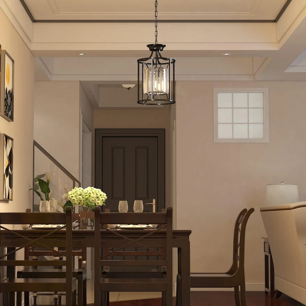 Store New Arrivals Add to Favorite View Feedback Contact Kitchen Island Lighting Black Light Fixture Modern Farmhouse Light Fixtures Ceiling Hanging Lights for Kitchen Pendant Lighting over Island Foyer Light Fixtures Entryway Light Fixture Hanging Crystal Description Item model number 82-V1EB-APMH Light Source Type Incandescent, Halogen, LED Style Industrial,Vintage,Farmhouse,Retro Number of Items 1 Power Source ac Number of Light Sources 1 Country of Origin China Warranty Type Limited Theme Industrial, Vintage, Farmhouse, Retro Lighting Method Downlight Finish Types Black Finished Embellishment Feature Crystal Controller Type Push Button Unit Count 75.2 Ounce Room Type Dinning Room,Bed Room, Living Room, Dining Room, Kitchen Island, Kids, Bathroom, Home Office,Bar. Switch Type Toggle Product Dimensions 9.4 x 9.4 x 66 inches; 4.7 Pounds Material Metal Required Assembly Yes Model Number 82-V1EB-APMH Installation Type Semi Flush Mount Model Name Pendant light fixture Additional Features illumination Specific Uses For Product Balcony Cabinet Deck Driveway Fence Garage Garden Home Pathway Patio Shop Walkway Fixture Type Pendant Light Fixture Ceiling Light Brightness 500 Lumen Material Type Metal Light Color warm white Item Weight 4.7 Pounds Light Fixture Form Pendant Light fixture form Pendant Bulb Base E26 Item Dimensions L x W x H 9.4"L x 9.4"W x 56.7"H Shade Color Black Metal,Transparent Crystal Mounting Type Ceiling Mount Color Black Wattage 60 watts Indoor Outdoor Usage Indoor Shape Round Voltage 110 Volts Control Method Touch Shade Material Metal,Crystal Included Components Shade,Crystal,Canopy Style Name Industrial,Vintage,Farmhouse,Retro Size 9.4 inch Creative Design:Black light fixture combines metal and crystal for a modern yet timeless look. It can be used as either a pendant lights kitchen island, dining room light fixture, hallway light fixtures ceiling, or farmhouse chandelier for entryway. adjustable height,It's perfect for both light fixtures ceiling hanging and ceiling mount light. The black finish gives a contemporary touch to any room. Upgrade your interior design with this stylish and versatile light fixture. Unique Pendant Light:Our black chandelier is more advanced,Unlike the common lantern pendant light,ours made with a combination of crystal and metal for a softer,the crystal helps to diffuse the light so that it is not directly in your eyes, making it more comfortable to look at.This combination creates a style that is both modern pendant light and rustic pendant light at the same time. With this crystal pendant light, you can create a chic and eye-catching look in any room. Bulb Type:The farmhouse chandelier with E26 socket, compatible with Incandescent, LED, CFL and Halogen Bulbs (Not Included), Works up to 60W max. The black light fixture can be easily dimmed when used with dimmable bulbs and compatible dimmers. Easy to install:We have optimized the packaging to make shipping lighter.the modern farmhouse chandelier boasts easy installation,crafted with crystal, metal support, and a hanging chain, simply follow the instructions in the user manual and you'll soon have a stunning crystal chandelier to light up your home. After-sale Service:We firmly believe our black pendant light have good quality. At the same time,we will provide a complete 12-month quality and a 30-day quality . If you have any questions, please feel free to . We specialize in making lamps,Customer satisfaction is our service tenet! Product Description Kitchen Pendant Lighting Over Island Entryway Light Fixture Hanging,Modern Farmhouse Pendant Light Elevate your dining experience with our black dining room light fixture. Crafted from a combination of K9 crystal and sturdy iron, the black pendant light fixtures seamlessly blends style and durability. The sleek black color adds a touch of sophistication to your space.Assembly Takes 20 Minutes. The video showcases the product in use. The video guides you through product setup. The video compares multiple products. The video shows the product being unpacked. Switching Hanging Ceiling Lights Fixtures Comparison Elevate your space with our lantern pendant lights, offering unparalleled lighting control. Crafted with precision and premium materials, these fixtures provide versatile illumination. The unique lantern style infuses your space with both fashion and elegance. whether switched on or off. Crystal Comparison Our farmhouse hanging light fixture stands out with meticulously cut and polished crystals, ensuring enhanced clarity and sophistication. The fine craftsmanship sets our crystals apart, offering a level of luminosity and luxury that distinguishes them from others chandelier light on the market. Support Dimmer Switch, E26 Base Chandelier lighting fixtures support dimmer switches, offering versatility in lighting. compatibility for E26 bulbs, you can effortlessly adjust the brightness to create the perfect ambiance. our fixtures provide the flexibility to tailor the lighting to your preference. Suitable for a wide range of scenarios Versatile and adaptable, crystal pendant lighting fixtures suit various settings seamlessly. From the living room to the bedroom, their flexible designs enhance any space. With quality craftsmanship, they effortlessly blend style and functionality, ensuring a perfect ambiance for diverse scenarios. Carefully Selected Accessories Universal Ceiling Canopy Enhance your kitchen island with our black pendant lights featuring a universal ceiling canopy. Perfect for flat, sloped, arched ceilings, these stylish fixtures blend modern design with adaptability. Compatible E26 Base Elevate your foyer's ambiance with our ceiling-hanging light fixtures. Ideal for a grand entrance, these modern entryway light fixture, compatible with one E26 bulbs, radiate a warm glow. Exquisite and Authentic Crystals Illuminate your space with a modern farmhouse pendant light, featuring exquisite and authentic crystals. This fusion of contemporar