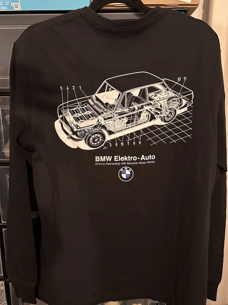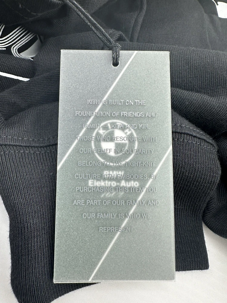 This Kith Elektro-Auto long sleeve tee in black is the perfect addition to any car enthusiast's wardrobe. The relaxed fit, regular size, and long sleeves make it suitable for any occasion. Made by Kith, the tee features an eye-catching cars theme that will turn heads wherever you go. With its brand new tags, this tee is a must-have for any stylish man. Whether you're dressing up for a special event or just going out for a casual day, this Kith tee is the perfect choice. Get it now and add a touch of style to your wardrobe! Go ahead and make an offer it is Christmas time. Thanks for looking.