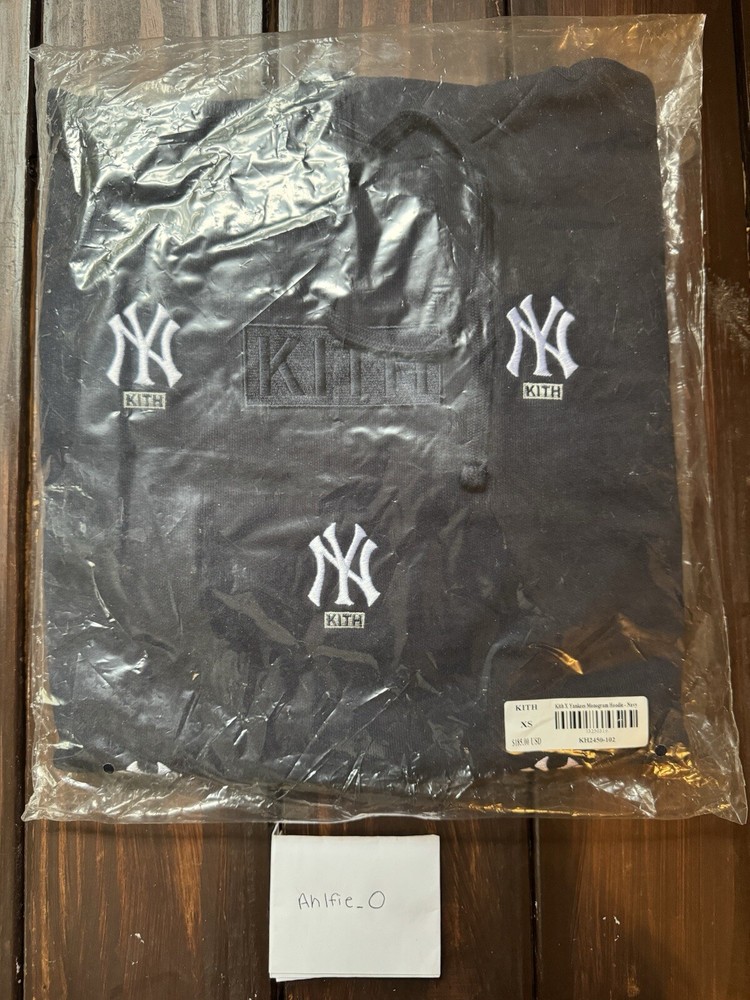Kith For Major League Baseball New York Yankees Monogram Hoodie - Navy Color - Size Extra Small 100% brand new, 100% authentic The Hoodie has never been removed from the plastic. Never worn. *Please do note the plastic has minor cosmetic damages. Please feel free to ask for additional pictures.