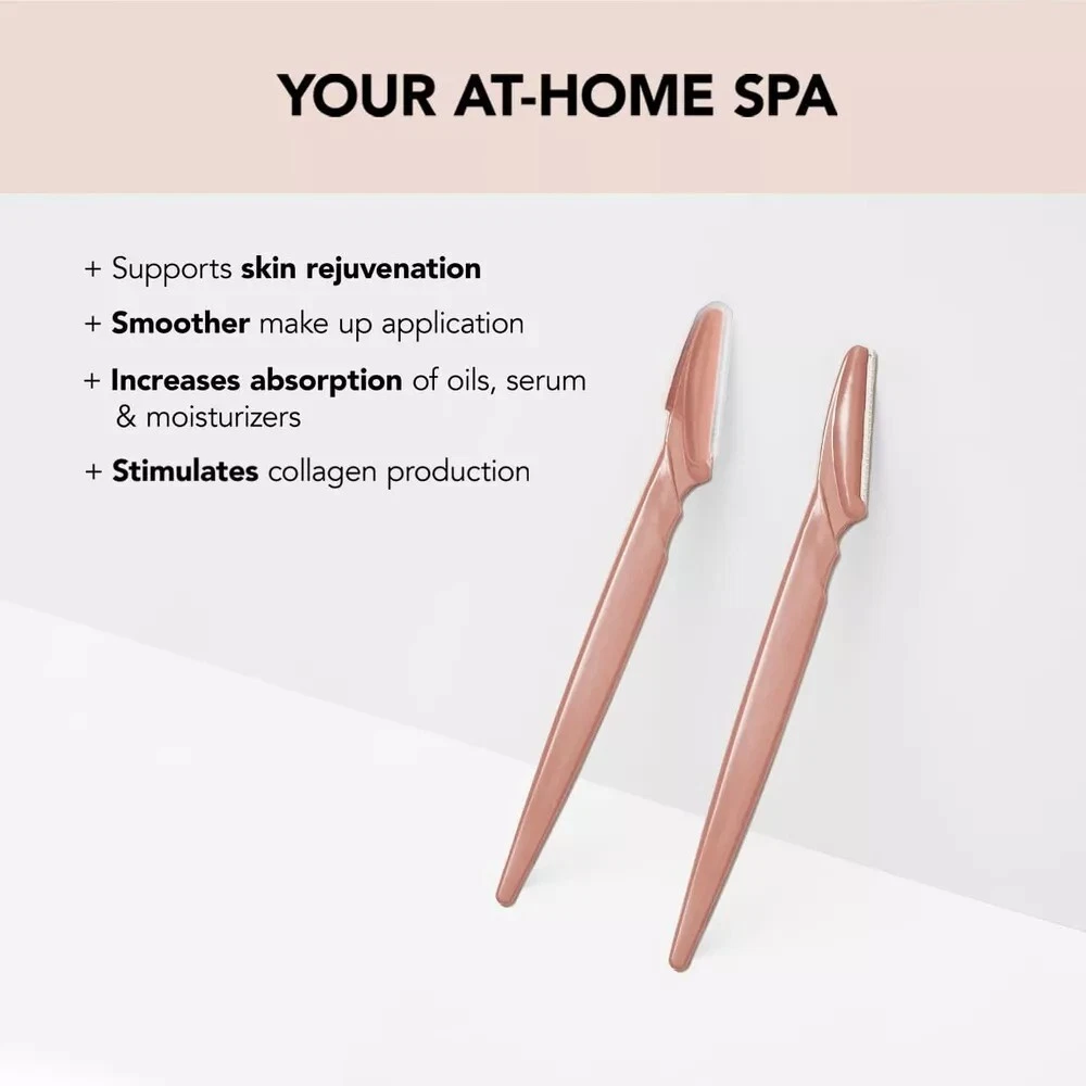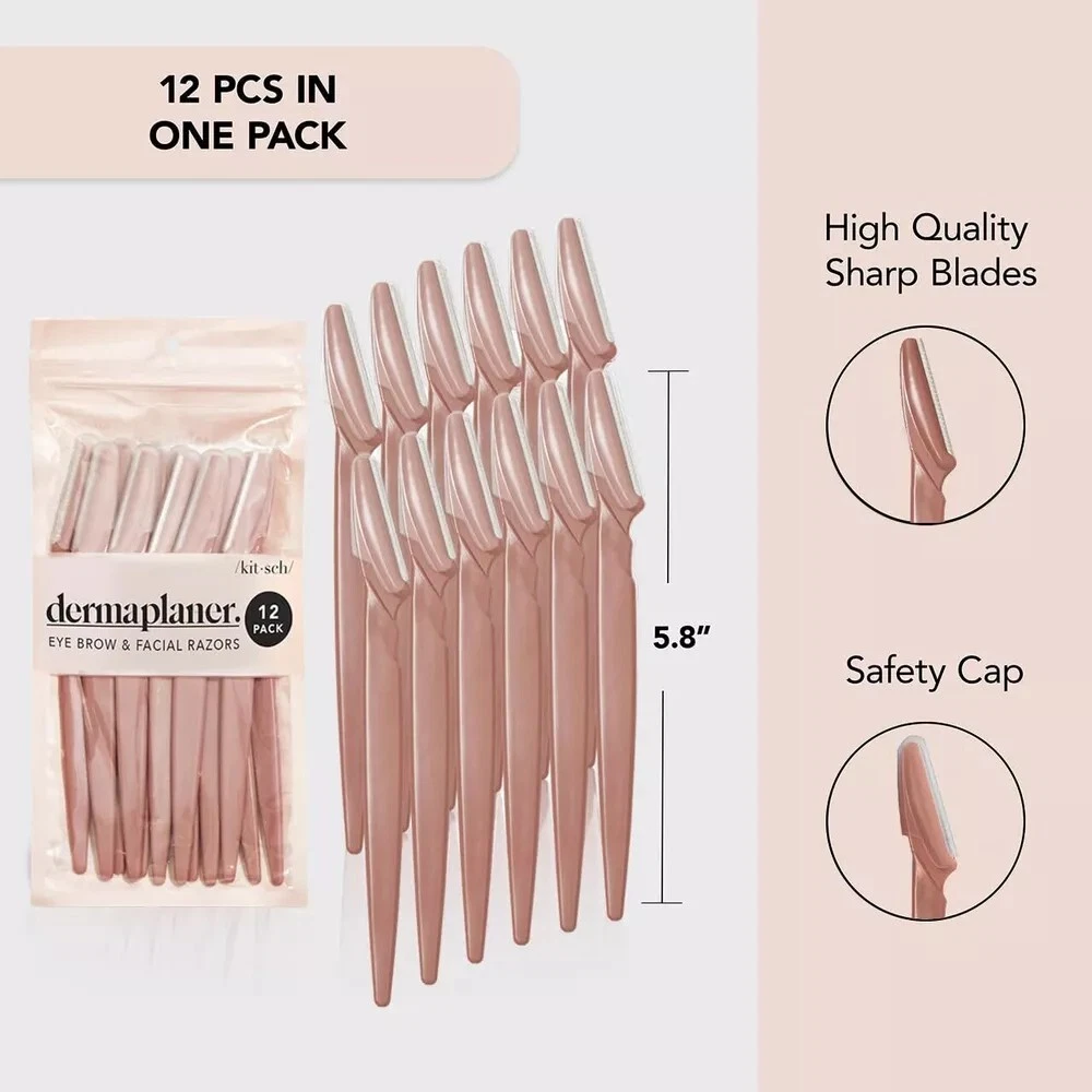 Kitsch Dermaplaning Tool - Face Razors for Women |Eyebrow Razor 12 Pc Terracotta Description Item model number 819677025540 Color Terracotta Product Dimensions 3.75 x 0.5 x 7.75 inches; 2.12 ounces Manufacturer KITSCH REMOVE UNWANTED HAIR: Our epilator for facial hair removal eliminates excess hair and dead skin from your face to create a beautiful, fresh glow. It's equipped with a 100% stainless steel blade and comes in a 12-pack of razors for women. Use once every 3-4 weeks for optimal results. Discover the hair remover of your dreams! EXFOLIATE YOUR SKIN: The Kitsch Pro dermaplaning tool set is a great way to keep your skin healthy, smooth and young! Our face razor for women gently exfoliates facial skin by removing dead skin cells and unwanted hair that can trap dirt and oil. YOUR AT-HOME SPA: Skip the expensive salons with our razors for women, and do it all by yourself in the comfort of your home! Our women's face shaver can leave you feeling more beautiful than ever before while saving you time and money. FOR FLAWLESS MAKEUP APPLICATION: Our dermaplaning tool facial hair removal for women helps prep the skin for smoother makeup application & stronger product absorption for a beautiful glow that lasts longer. MULTIPURPOSE TOOL: Whether you're looking for peach fuzz & hair removal, eyebrow razor, or exfoliation for smoother skin, This facial hair trimmer for women can do it all! It also makes the perfect gift for a loved one. Product Description 1 Our Story 2 Sustainability