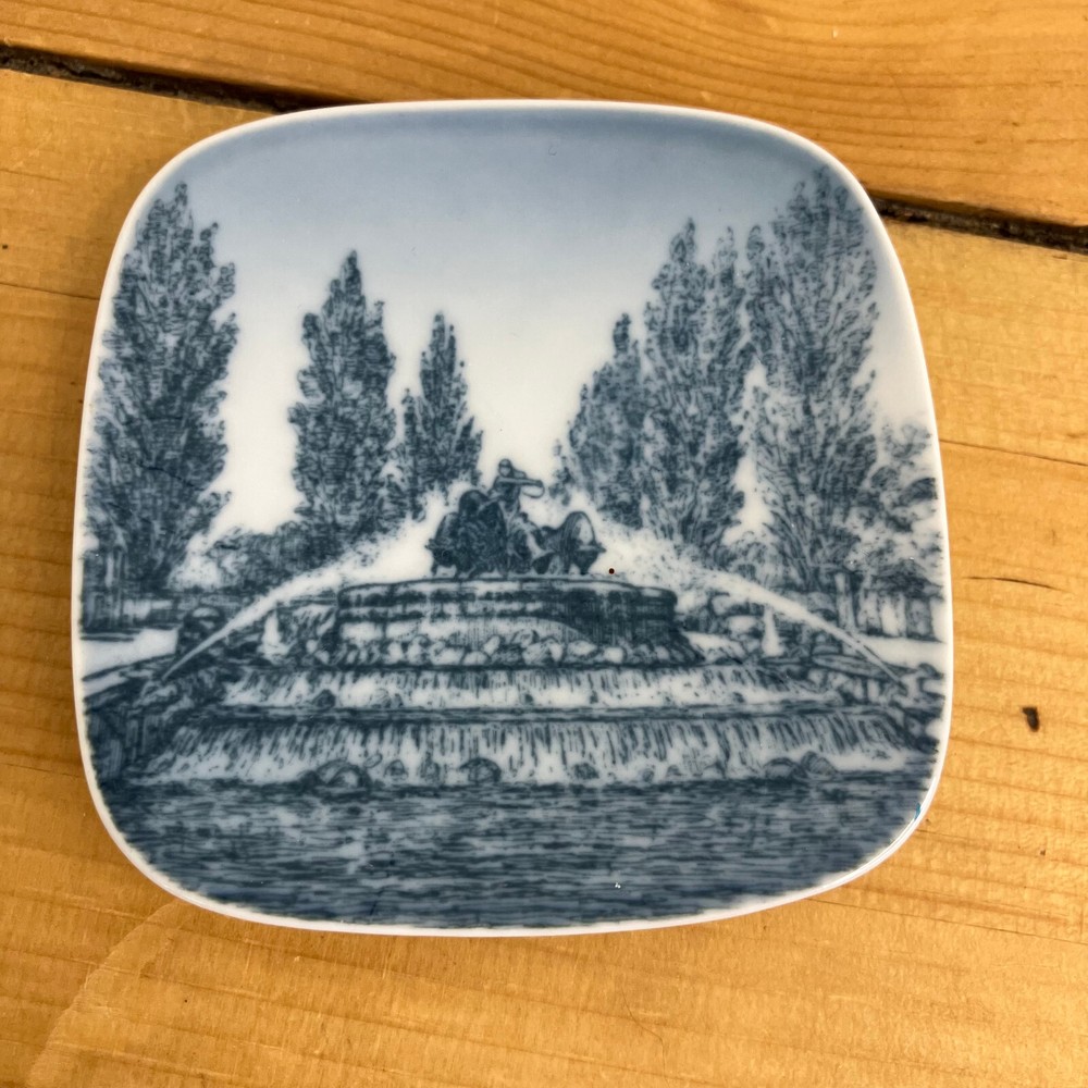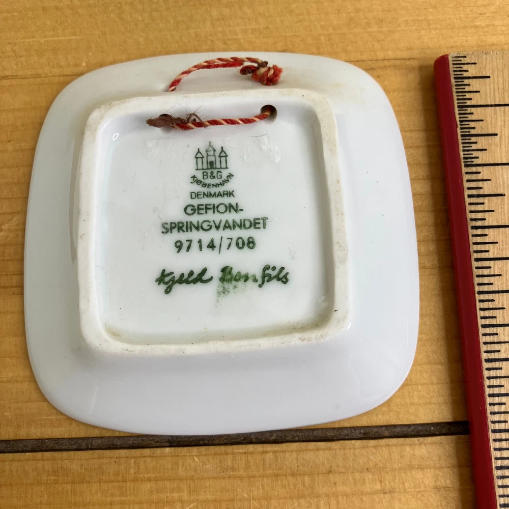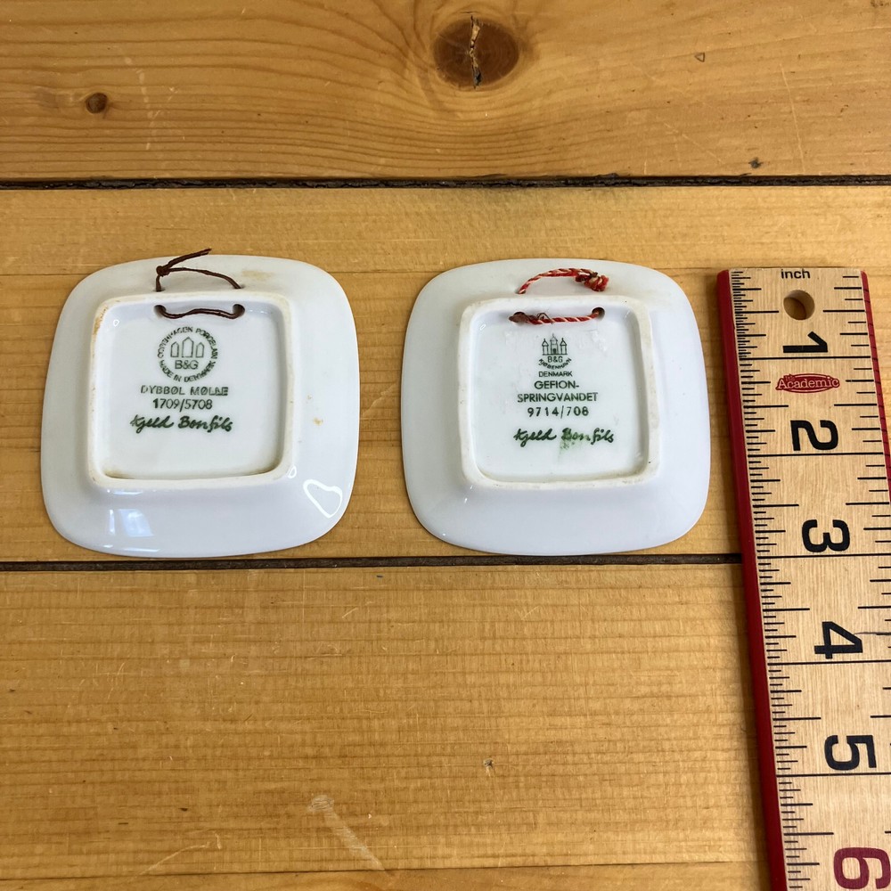 Vintage set of 2 Bing & Grondahl Coppenhagen Kjeld Bonfils mini collector plates have different countryside designs. Windmill design is numbered 1709/5708 on the back and says "Dybbol Molle". The other design number is 9714/708 and says "Gefion-Springvandet". Both are approx. 3 1/8" square. Pre-owned condition: backs have a few small marks from display. The pictures show the actual items that you will receive. Ships from Alberta, Canada. Tax applies to purchases.